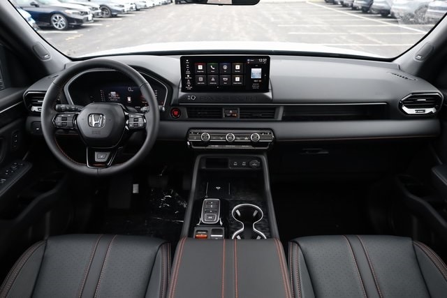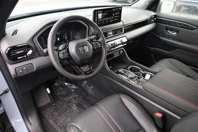 This Passport is well equipped with 12 Speakers, 4-Wheel Disc Brakes, ABS brakes, Adaptive Cruise Control: Adaptive Cruise Control (ACC) with Low-Speed Follow, Air Conditioning, Alloy wheels, Apple CarPlay/Android Auto, Auto High-beam Headlights, Auto-dimming door mirrors, Auto-dimming Rear-View mirror, Automatic temperature control, Blind Spot Information (BSI) System warning, Brake assist, Compass, Delay-off headlights, Driver door bin, Driver vanity mirror, Driver's Seat Mounted Armrest, Dual front impact airbags, Dual front side impact airbags, Electronic Stability Control, Emergency communication system: HondaLink, Exterior Parking Camera Rear, Four wheel independent suspension, Front anti-roll bar, Front Bucket Seats, Front Center Armrest, Front dual zone A/C, Front fog lights, Front reading lights, Fully automatic headlights, Heated & Ventilated Front Bucket Seats, Heated door mirrors, Heated front seats, Heated rear seats, Heated steering wheel, HVAC memory, Illuminated entry, Knee airbag, Lane departure: Lane Keeping Assist System (LKAS) active, Leather steering wheel, Low tire pressure warning, Memory seat, Navigation system: Google Maps, Occupant sensing airbag, Outside temperature display, Overhead airbag, Overhead console, Panic alarm, Passenger door bin, Passenger seat mounted armrest, Passenger vanity mirror, Perforated Leather Seat Trim, Power door mirrors, Power driver seat, Power Liftgate, Power moonroof, Power passenger seat, Power steering, Power windows, Radio data system, Radio: Bose Premium Sound System w/12 Speakers, Rain sensing wipers, Rear air conditioning, Rear anti-roll bar, Rear reading lights, Rear seat center armrest, Rear window defroster, Rear window wiper, Remote keyless entry, Security system, Speed control, Speed-sensing steering, Split folding rear seat, Spoiler, Steering wheel mounted audio controls, Tachometer, Telescoping steering wheel, Tilt steering wheel, Traction control, Trip computer, Turn signal indicator mirrors, Variably intermittent wipers, Ventilated front seats, and Wheels: 18" Berlina Black Machine Face Alloy.