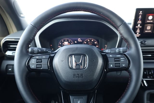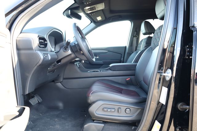 This Pilot is well equipped with AWD, 12 Speakers, 3rd row seats: split-bench, 4-Wheel Disc Brakes, ABS brakes, Adaptive Cruise Control: Adaptive Cruise Control (ACC) with Low-Speed Follow, Air Conditioning, Alloy wheels, Apple CarPlay/Android Auto, Auto High-beam Headlights, Auto-dimming door mirrors, Auto-dimming Rear-View mirror, Automatic temperature control, Blind Spot Information (BSI) System warning, Bose Premium Sound System, Brake assist, Bumpers: body-color, Compass, Delay-off headlights, Driver door bin, Driver vanity mirror, Dual front impact airbags, Dual front side impact airbags, Electronic Stability Control, Emergency communication system: HondaLink, Exterior Parking Camera Rear, Four wheel independent suspension, Front anti-roll bar, Front Bucket Seats, Front Center Armrest, Front dual zone A/C, Front fog lights, Front reading lights, Fully automatic headlights, Garage door transmitter: HomeLink, Heads-Up Display, Heated and Ventilated Front Bucket Seats, Heated door mirrors, Heated front seats, Heated rear seats, Heated steering wheel, HondaLink, HondaLink Subscription Services, Illuminated entry, Knee airbag, Lane departure: Lane Keeping Assist System (LKAS) active, Low tire pressure warning, Memory seat, Navigation system: Google Maps, Occupant sensing airbag, Outside temperature display, Overhead airbag, Overhead console, Panic alarm, Passenger door bin, Passenger vanity mirror, Perforated Leather-Trimmed Seat Trim, Power door mirrors, Power driver seat, Power Liftgate, Power moonroof, Power passenger seat, Power steering, Power windows, Radio data system, Rain sensing wipers, Rear air conditioning, Rear anti-roll bar, Rear reading lights, Rear seat center armrest, Rear window defroster, Rear window wiper, Reclining 3rd row seat, Remote keyless entry, Security system, Speed control, Speed-sensing steering, Speed-Sensitive Wipers, Split folding rear seat, Spoiler, Steering wheel mounted audio controls, Tachometer, Telescoping steering wheel, Tilt steering wheel, Traction control, Trip computer, Turn signal indicator mirrors, Variably intermittent wipers, Ventilated front seats, and Wheels: 20" Gloss Black with Black Lug Nuts.