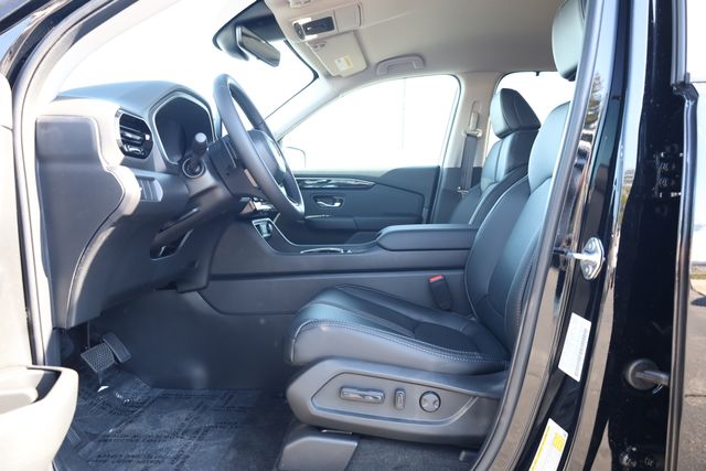 This Pilot is well equipped with 3rd row seats: split-bench, 4-Wheel Disc Brakes, 9 Speakers, ABS brakes, Adaptive Cruise Control: Adaptive Cruise Control (ACC) with Low-Speed Follow, Air Conditioning, Alloy wheels, Apple CarPlay/Android Auto, Auto High-beam Headlights, Auto-dimming Rear-View mirror, Automatic temperature control, Blind Spot Information (BSI) System warning, Brake assist, Bumpers: body-color, Compass, Delay-off headlights, Driver door bin, Driver vanity mirror, Dual front impact airbags, Dual front side impact airbags, Electronic Stability Control, Emergency communication system: HondaLink, Exterior Parking Camera Rear, Four wheel independent suspension, Front anti-roll bar, Front Bucket Seats, Front Center Armrest, Front dual zone A/C, Front fog lights, Front reading lights, Fully automatic headlights, Heated door mirrors, Heated Front Bucket Seats, Heated front seats, HondaLink, HondaLink Subscription Services, Illuminated entry, Knee airbag, Lane departure: Lane Keeping Assist System (LKAS) active, Leather-Trimmed Seat Trim with Fabric Accent, Low tire pressure warning, Memory seat, Navigation system: Google Maps, Occupant sensing airbag, Outside temperature display, Overhead airbag, Overhead console, Panic alarm, Passenger door bin, Passenger vanity mirror, Power door mirrors, Power driver seat, Power Liftgate, Power passenger seat, Power steering, Power windows, Radio data system, Radio: 245-Watt Audio System, Rear air conditioning, Rear anti-roll bar, Rear reading lights, Rear seat center armrest, Rear window defroster, Rear window wiper, Reclining 3rd row seat, Remote keyless entry, Security system, Speed control, Speed-sensing steering, Speed-Sensitive Wipers, Split folding rear seat, Spoiler, Steering wheel mounted audio controls, Tachometer, Telescoping steering wheel, Tilt steering wheel, Traction control, Trip computer, Turn signal indicator mirrors, Variably intermittent wipers, and Wheels: 18" Pewter Gray Machined Face.