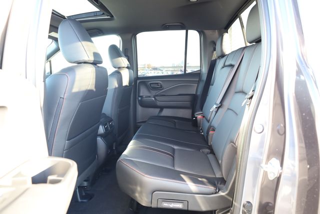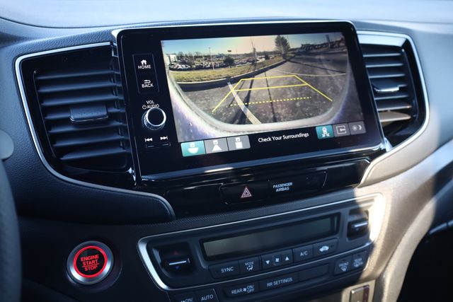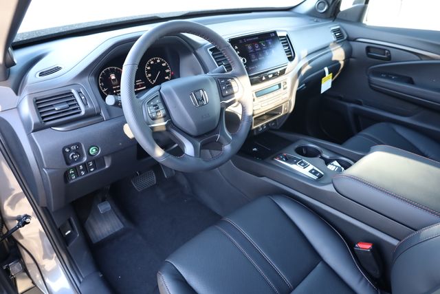 This Ridgeline is well equipped with Black Leather, 4-Wheel Disc Brakes, 4.33 Axle Ratio, 7 Speakers, ABS brakes, Air Conditioning, Alloy wheels, AM/FM radio: SiriusXM, Auto-dimming Rear-View mirror, Automatic temperature control, Blind Spot Information (BSI) System warning, Bluetooth® Hands-Free Link, Brake assist, Bumpers: body-color, Compass, Delay-off headlights, Driver door bin, Driver vanity mirror, Driver's Seat Mounted Armrest, Dual front impact airbags, Dual front side impact airbags, Electronic Stability Control, Emergency communication system: HondaLink Assist, Exterior Parking Camera Rear, Four wheel independent suspension, Front anti-roll bar, Front Bucket Seats, Front dual zone A/C, Front fog lights, Front reading lights, Fully automatic headlights, Garage door transmitter: HomeLink, Heated door mirrors, Heated Front Bucket Seats, Heated front seats, Heated steering wheel, Honda Satellite-Linked Navigation System, Illuminated entry, Leather Seat Trim, Leather steering wheel, Low tire pressure warning, Memory seat, Navigation system: Honda Satellite-Linked Navigation System, Occupant sensing airbag, Outside temperature display, Overhead airbag, Overhead console, Panic alarm, Passenger door bin, Passenger seat mounted armrest, Passenger vanity mirror, Power door mirrors, Power driver seat, Power moonroof, Power passenger seat, Power steering, Power windows, Radio data system, Radio: 215-Watt Audio System with 7 Speakers, Rear air conditioning, Rear anti-roll bar, Rear reading lights, Rear seat center armrest, Rear step bumper, Rear window defroster, Remote keyless entry, Security system, SiriusXM, Speed control, Speed-sensing steering, Split folding rear seat, Steering wheel mounted audio controls, Tachometer, Telescoping steering wheel, Tilt steering wheel, Traction control, Trip computer, Turn signal indicator mirrors, Variably intermittent wipers, and Wheels: 18" HPD Black Alloy.