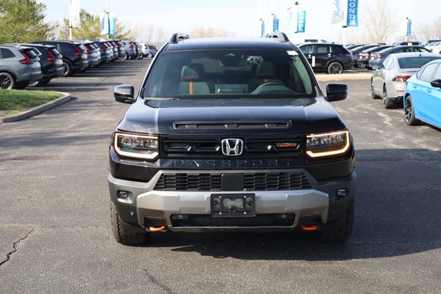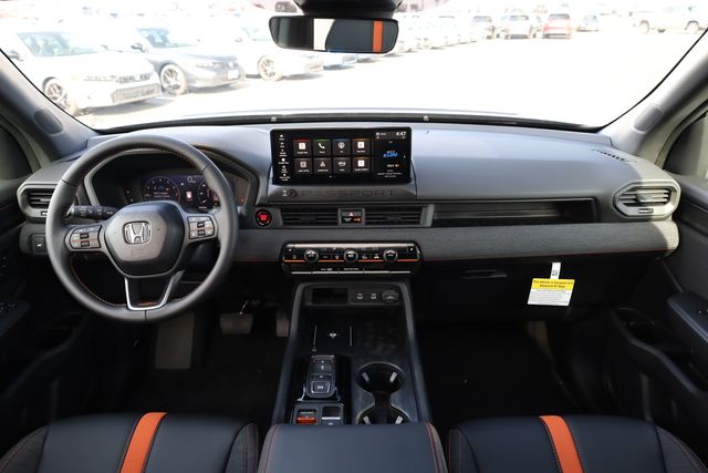 This Passport is well equipped with 4-Wheel Disc Brakes, 9 Speakers, ABS brakes, Adaptive Cruise Control: Adaptive Cruise Control (ACC) with Low-Speed Follow, Air Conditioning, Alloy wheels, Apple CarPlay/Android Auto, Auto High-beam Headlights, Auto-dimming Rear-View mirror, Automatic temperature control, Blind Spot Information (BSI) System warning, Brake assist, Compass, Delay-off headlights, Driver door bin, Driver vanity mirror, Driver's Seat Mounted Armrest, Dual front impact airbags, Dual front side impact airbags, Durable Leatherette and Cloth Seat Trim, Electronic Stability Control, Emergency communication system: HondaLink, Exterior Parking Camera Rear, Four wheel independent suspension, Front anti-roll bar, Front Bucket Seats, Front Center Armrest, Front dual zone A/C, Front fog lights, Front reading lights, Fully automatic headlights, Heated door mirrors, Heated Front Bucket Seats, Heated front seats, HVAC memory, Illuminated entry, Knee airbag, Lane departure: Lane Keeping Assist System (LKAS) active, Leather steering wheel, Low tire pressure warning, Memory seat, Navigation system: Google Maps, Occupant sensing airbag, Outside temperature display, Overhead airbag, Overhead console, Panic alarm, Passenger door bin, Passenger seat mounted armrest, Passenger vanity mirror, Power door mirrors, Power driver seat, Power Liftgate, Power moonroof, Power passenger seat, Power steering, Power windows, Radio data system, Radio: Audio System with 9 Speakers, Rear air conditioning, Rear anti-roll bar, Rear reading lights, Rear seat center armrest, Rear window defroster, Rear window wiper, Remote keyless entry, Security system, Speed control, Speed-sensing steering, Split folding rear seat, Spoiler, Steering wheel mounted audio controls, Tachometer, Telescoping steering wheel, Tilt steering wheel, Traction control, Trip computer, Turn signal indicator mirrors, Variably intermittent wipers, and Wheels: 18" Matte Shark Grey Alloy.