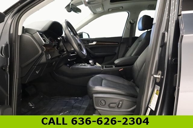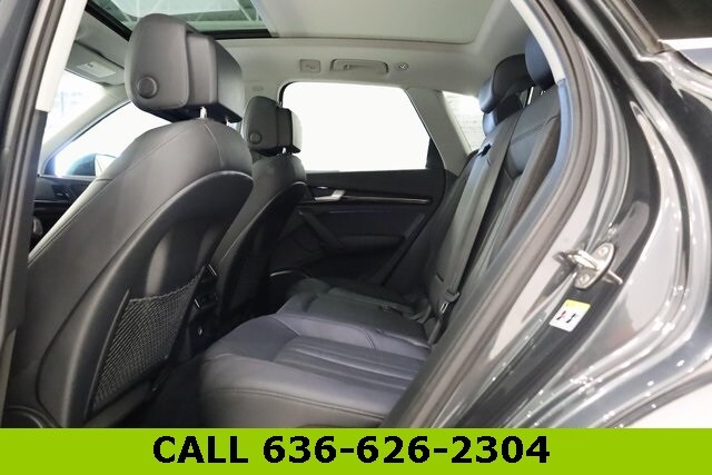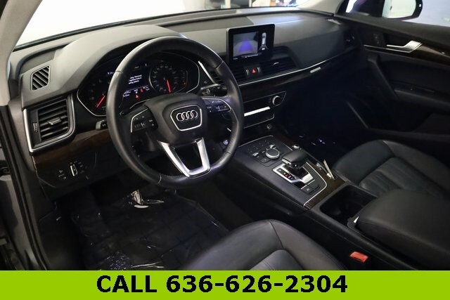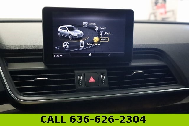 This Q5 is well equipped with Convenience Package (Audi Advanced Key, Audi Pre Sense Rear, Audi Side Assist, Auto-Dimming Power Folding Mirrors, Driver Seat Memory, and SiriusXM All Access Service), Black Leather, 10 Speakers, 4-Wheel Disc Brakes, 5.302 Axle Ratio, ABS brakes, Air Conditioning, Alloy wheels, AM/FM radio, Audi Beam-Rings, Audi Guard All-Weather Floor Mats (Set of 4), Audi smartphone interface (Apple CarPlay/Android Auto), Auto-dimming Rear-View mirror, Automatic temperature control, Black Privacy Trunk Cover, Brake assist, Bumpers: body-color, Compass, Delay-off headlights, Driver door bin, Driver vanity mirror, Dual front impact airbags, Dual front side impact airbags, Electronic Stability Control, Emergency communication system: Audi connect CARE, Exterior Parking Camera Rear, Four wheel independent suspension, Front anti-roll bar, Front Bucket Seats, Front Center Armrest, Front dual zone A/C, Front fog lights, Front reading lights, Garage door transmitter: HomeLink, Genuine wood console insert, Genuine wood dashboard insert, Genuine wood door panel insert, Heated 8-Way Power Front Bucket Seats, Heated door mirrors, Heated front seats, High intensity discharge headlights: Xenon plus, Illuminated entry, Leather Seating Surfaces, Leather Shift Knob, Leather steering wheel, Low tire pressure warning, Occupant sensing airbag, Outside temperature display, Overhead airbag, Overhead console, Panic alarm, Panoramic Sunroof, Passenger door bin, Passenger vanity mirror, Power door mirrors, Power driver seat, Power Liftgate, Power passenger seat, Power steering, Power windows, Radio data system, Radio: Audi Sound System w/7" Display, Rain sensing wipers, Rear air conditioning, Rear anti-roll bar, Rear fog lights, Rear reading lights, Rear seat center armrest, Rear window defroster, Rear window wiper, Remote keyless entry, Roof rack, Security system, Speed control, Speed-sensing steering, Speed-Sensitive Wipers, Split folding rear seat, Spoiler, Steering wheel mounted audio controls, Tachometer, Telescoping steering wheel, Tilt steering wheel, Traction control, Trip computer, Turn signal indicator mirrors, USB Cables, Variably intermittent wipers, and Wheels: 18" 5-Double-Spoke