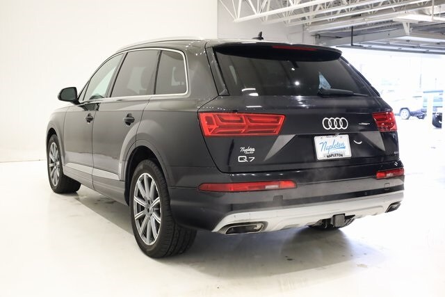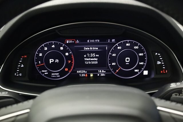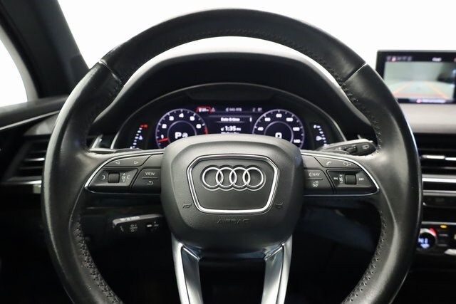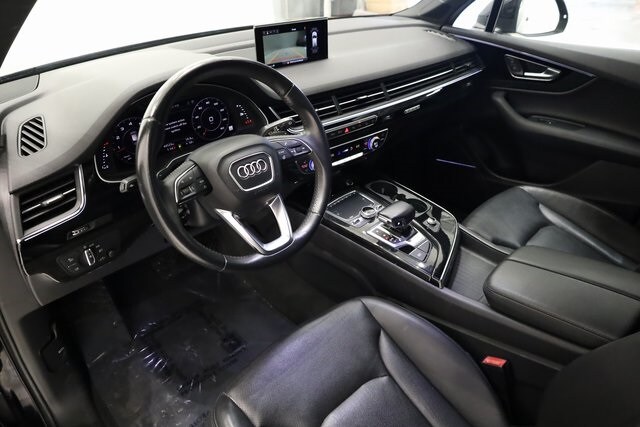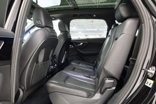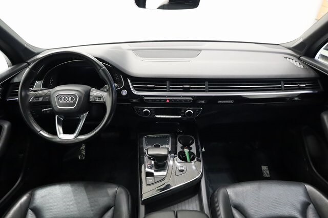 This Q7 is well equipped with Cold Weather Package (3-Spoke Multifunction Steering Wheel w/Paddles, Black Rubber All-Weather Floor Mats (Set of 4), and Heated Rear Seats), Convenience Package (Audi Phone Box w/Wireless Charging, Audi Side Assist w/Pre Sense Rear, and Heated Auto-Dimming Power Folding Exterior Mirrors), Driver Assistance Package (Audi Active Lane Assist, Audi Adaptive Cruise Control w/Traffic Jam Assist, Audi Park Steering Assist, Audi Pre Sense Front, High-Beam Assistant, and Traffic Sign Recognition), LED Interior Lighting Package, Premium Plus Package (3D Bose Surround Sound System, Audi Virtual Cockpit, LED Headlights w/Dynamic Indicators, and Topview Camera System), Towing Package, Warm Weather Package (4-Zone Automatic Climate Control, Driver & Passenger Front Seats w/Ventilation, and Rear Door/Side Windows & Tailgate Sunshades), 10 Speakers, 3.204 Axle Ratio, 3rd row seats: bench, 4-Wheel Disc Brakes, ABS brakes, Air Conditioning, Alloy wheels, AM/FM radio: SiriusXM, Audi smartphone interface (Apple CarPlay/Android Auto), Auto-dimming Rear-View mirror, Automatic temperature control, Black Cloth Headliner, Brake assist, Bumpers: body-color, CD player, Compass, Delay-off headlights, Driver door bin, Driver vanity mirror, Driver's Seat Mounted Armrest, Dual front impact airbags, Dual front side impact airbags, Electronic Stability Control, Emergency communication system: Audi connect CARE, Exterior Parking Camera Rear, Four wheel independent suspension, Front & Rear Doors Audi Beam-Rings, Front anti-roll bar, Front Bucket Seats, Front dual zone A/C, Front fog lights, Front reading lights, Fully automatic headlights, Garage door transmitter: HomeLink, Heated door mirrors, Heated Front Bucket Seats, Heated front seats, High intensity discharge headlights: Xenon plus, Illuminated entry, Leather Seating Surfaces, Leather Shift Knob, Leather steering wheel, Low tire pressure warning, Memory seat, Navigation system: MMI Navigation plus, Occupant sensing airbag, Outside temperature display, Overhead airbag, Panic alarm, Passenger door bin, Passenger seat mounted armrest, Passenger vanity mirror, Power door mirrors, Power driver seat, Power Liftgate, Power moonroof, Power passenger seat, Power steering, Power windows, Privacy Trunk Cover, Radio data system, Radio: Audi MMI Navigation Plus, Rain sensing wipers, Rear air conditioning, Rear anti-roll bar, Rear fog lights, Rear reading lights, Rear seat center armrest, Rear window defroster, Rear window wiper, Remote keyless entry, Roof rack: rails only, Security system, Speed control, Speed-sensing steering, Split folding rear seat, Spoiler, Steering wheel memory, Steering wheel mounted audio controls, Tachometer, Telescoping steering wheel, Tilt steering wheel, Traction control, Trip computer, Turn signal indicator mirrors, USB Cables, Variably intermittent wipers, Wheels: 19" 5-V-Spoke Design, and Wheels: 20" 10-Spoke-Star Design Bi-Color.