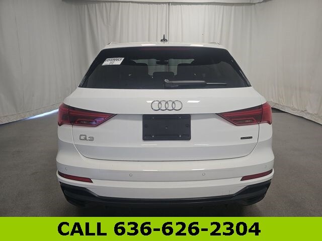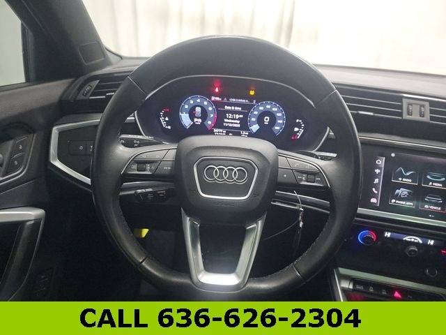 This Q3 is well equipped with 19" Wheel Package (Wheels: 19" 5-Double-Spoke Dynamic Design), Convenience Package (Alarm w/Motion Sensor, Audi Advanced Key, Driver Memory, Frameless Auto-Dimming Interior Mirror w/Compass, Heated Power-Folding Exterior Mirrors, HomeLink Garage Door Opener, and SiriusXM All Access Service), Customizable LED Interior Lighting Package Plus, LED Interior Lighting Package, Premium Plus Package (Adaptive Cruise Assist w/Lane Guidance, Audi Phone Box w/Wireless Charging, Full LED Headlights w/Unique DRL Signature, Stainless Steel Trunk Sill, and Topview Camera System), 10 Speakers, 3.533 Axle Ratio, 4-Wheel Disc Brakes, ABS brakes, Air Conditioning, Alloy wheels, AM/FM radio, Audi Advanced Key Credit, Audi Beam-Rings, Audi Guard Protection Kit, Audi smartphone interface (Apple CarPlay/Android Auto), Auto High-beam Headlights, Automatic temperature control, Brake assist, Bumpers: body-color, Delay-off headlights, Driver door bin, Driver vanity mirror, Dual front impact airbags, Dual front side impact airbags, Electronic Stability Control, Emergency communication system: Audi connect CARE, Exterior Parking Camera Rear, Four wheel independent suspension, Front anti-roll bar, Front Bucket Seats, Front Center Armrest, Front dual zone A/C, Front fog lights, Front reading lights, Fully automatic headlights, Heated door mirrors, Heated Front Bucket Seats, Heated front seats, Illuminated entry, Knee airbag, Leather Seating Surfaces, Leather Shift Knob, Leather steering wheel, Low tire pressure warning, Occupant sensing airbag, Outside temperature display, Overhead airbag, Overhead console, Panic alarm, Passenger door bin, Passenger vanity mirror, Power door mirrors, Power driver seat, Power Liftgate, Power moonroof: Panoramic, Power passenger seat, Power steering, Power windows, Radio data system, Radio: Audi Sound System, Rain sensing wipers, Rear air conditioning, Rear anti-roll bar, Rear fog lights, Rear reading lights, Rear seat center armrest, Rear window defroster, Rear window wiper, Remote keyless entry, Speed control, Speed-sensing steering, Split folding rear seat, Spoiler, Steering wheel mounted audio controls, Tachometer, Telescoping steering wheel, Tilt steering wheel, Traction control, Trip computer, Turn signal indicator mirrors, Variably intermittent wipers, and Wheels: 18" 5-V-Spoke-S Design.