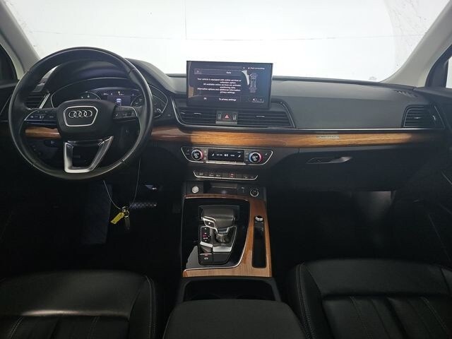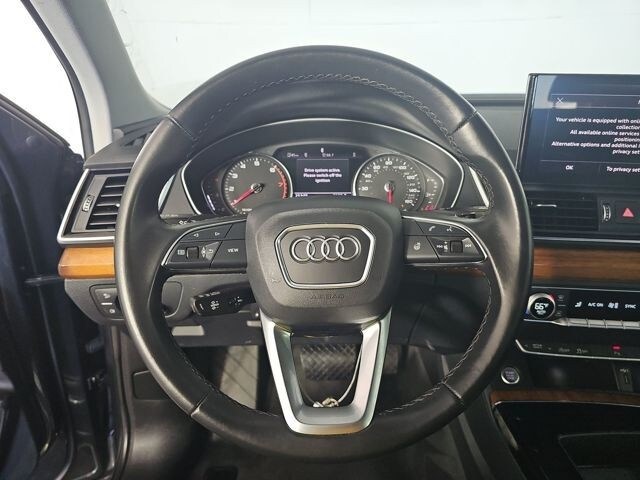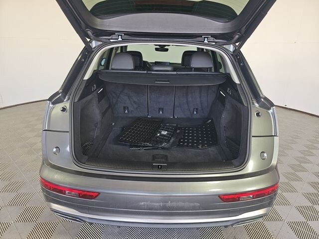 This Q5 is well equipped with Convenience Package (Audi Advanced Key, Auto-Dimming Power Folding Exterior Mirrors, Driver Seat Memory, Heated Steering Wheel, and SiriusXM w/360L), Black Leather, 10 Speakers, 4-Wheel Disc Brakes, 5.302 Axle Ratio, ABS brakes, Air Conditioning, All-Weather Floor Mats, Alloy wheels, AM/FM radio, Audi Beam-Rings, Audi Guard Protection Kit, Auto-dimming Rear-View mirror, Automatic temperature control, Brake assist, Bumpers: body-color, Cargo Mat, Compass, Delay-off headlights, Driver door bin, Driver vanity mirror, Dual front impact airbags, Dual front side impact airbags, Electronic Stability Control, Emergency communication system: Audi connect CARE, Exterior Parking Camera Rear, Four wheel independent suspension, Front anti-roll bar, Front Bucket Seats, Front Center Armrest, Front dual zone A/C, Front fog lights, Front reading lights, Garage door transmitter: HomeLink, Genuine wood console insert, Genuine wood dashboard insert, Genuine wood door panel insert, Heated 8-Way Power Front Bucket Seats, Heated door mirrors, Heated front seats, Illuminated entry, Integrated Toll Module Delete (DISC), Leather Seating Surfaces, Leather Shift Knob, Low tire pressure warning, Occupant sensing airbag, Outside temperature display, Overhead airbag, Overhead console, Panic alarm, Passenger door bin, Passenger vanity mirror, Power door mirrors, Power driver seat, Power Liftgate, Power passenger seat, Power steering, Power windows, Privacy Trunk Cover, Radio data system, Radio: Audi Sound System, Rain sensing wipers, Rear air conditioning, Rear anti-roll bar, Rear fog lights, Rear reading lights, Rear seat center armrest, Rear window defroster, Rear window wiper, Remote keyless entry, Roof rack, Security system, Speed control, Speed-sensing steering, Speed-Sensitive Wipers, Split folding rear seat, Spoiler, Steering wheel mounted audio controls, Tachometer, Telescoping steering wheel, Tilt steering wheel, Traction control, Trip computer, Turn signal indicator mirrors, Variably intermittent wipers, and Wheels: 18" 5-Arm-Turbine Design.