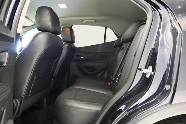 This Encore is well equipped with Preferred Equipment Group 1SB, Safety Package (120-Volt Power Outlet, Rear Cross Traffic Alert, and Side Blind Zone Alert), 18" Aluminum Wheels, 2-Way Manual Front Passenger Seat Adjuster, 3.53 Final Drive Axle Ratio, 4-Wheel Disc Brakes, 6 Speakers, 6-Speaker Audio System, 6-Way Power Driver Seat Adjuster, ABS brakes, Air Conditioning, Alloy wheels, AM/FM radio: SiriusXM, Apple CarPlay/Android Auto, Brake assist, Bumpers: body-color, Cloth w/Leatherette Seat Trim, Compass, Delay-off headlights, Driver door bin, Driver vanity mirror, Driver's Seat Mounted Armrest, Dual front impact airbags, Dual front side impact airbags, Electronic Stability Control, Emergency communication system: OnStar and Buick connected services capable, Exterior Parking Camera Rear, Front anti-roll bar, Front Bucket Seats, Front reading lights, Front wheel independent suspension, Fully automatic headlights, Heated door mirrors, Illuminated entry, Knee airbag, Leather steering wheel, Low tire pressure warning, Occupant sensing airbag, Outside temperature display, Overhead airbag, Panic alarm, Passenger door bin, Passenger vanity mirror, Power door mirrors, Power driver seat, Power steering, Power windows, Radio data system, Radio: 7" Diagonal Buick Infotainment System, Radio: Buick Infotainment System AM/FM Stereo (DISC), Rear seat center armrest, Rear side impact airbag, Rear window defroster, Rear window wiper, Remote keyless entry, Remote Vehicle Starter System, Ride & Handling Suspension, Roof rack: rails only, Security system, SiriusXM Radio, Speed control, Speed-sensing steering, Split folding rear seat, Spoiler, Steering wheel mounted audio controls, Tachometer, Telescoping steering wheel, Tilt steering wheel, Traction control, Trip computer, and Variably intermittent wipers.