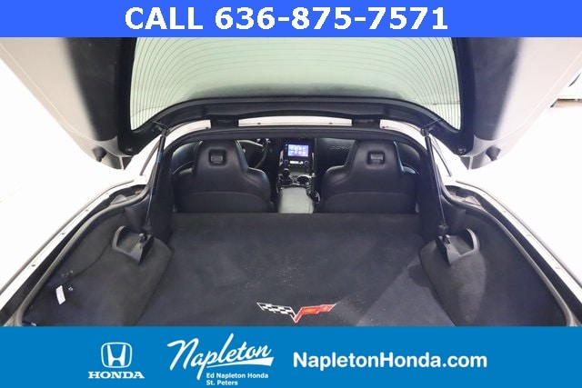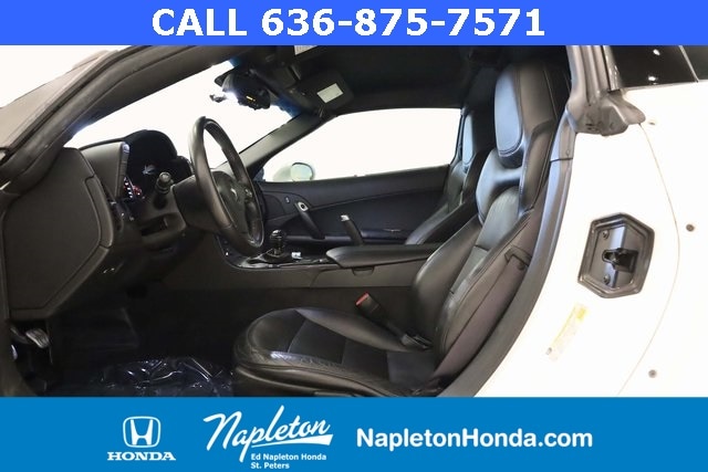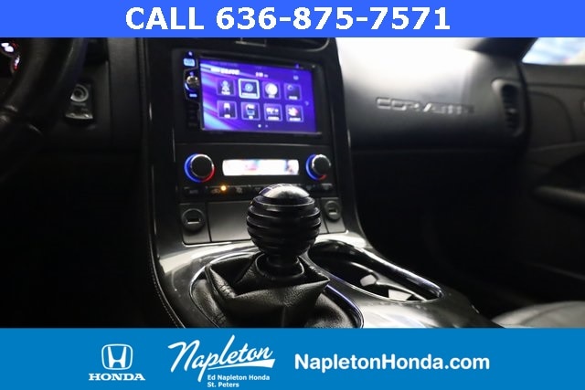 This Corvette is well equipped with Preferred Equipment Group 1LT (6-Way Power Front Passenger Seat Adjuster and 7-Speaker Audio System Feature), 1-Piece Removable Body-Color Roof Panel, 18" x 8.5" Fr & 19" x 10" Rr 5-Spoke Wheels, 4-Wheel Disc Brakes, 7 Speakers, ABS brakes, Air Conditioning, Alloy wheels, AM/FM radio: SiriusXM, AM/FM Stereo w/CD Player/MP3 Playback, Auto-dimming door mirrors, Auto-dimming Rear-View mirror, Automatic temperature control, Bumpers: body-color, CD player, Compass, Delay-off headlights, Driver door bin, Driver vanity mirror, Dual front impact airbags, Dual front side impact airbags, Electronic Stability Control, Emergency communication system: OnStar Directions & Connections, Four wheel independent suspension, Front anti-roll bar, Front Bucket Seats, Front Center Armrest, Front dual zone A/C, Front fog lights, Front License Plate Bracket, Front reading lights, Fully automatic headlights, Heated door mirrors, High-Intensity Discharge Headlights, Illuminated entry, Leather Seating Surfaces, Leather Shift Knob, Leather steering wheel, Low tire pressure warning, Modified Front Bucket Seats, Occupant sensing airbag, Outside temperature display, Panic alarm, Passenger door bin, Passenger vanity mirror, Power door mirrors, Power driver seat, Power passenger seat, Power steering, Power windows, Radio data system, Rear anti-roll bar, Rear window defroster, Remote keyless entry, Security system, SIRIUSXM Satellite Radio, Speed control, Speed-sensing steering, Sport steering wheel, Steering wheel mounted audio controls, Tachometer, Tilt steering wheel, Traction control, Trip computer, Variably intermittent wipers, and Voltmeter.