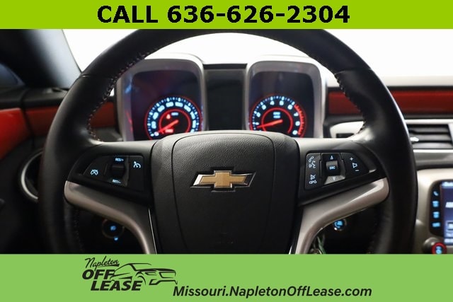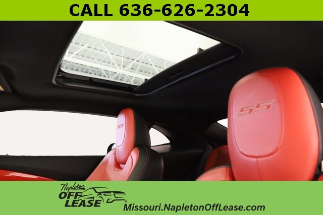 CLEAN CARFAX NO ACCIDENTS, Ed Napleton Honda in St. Peters, conveniently located at I-70 and Mid Rivers Mall Drive, is proud to present this 2015 Chevrolet Camaro SS with the RS Package, featuring eye-catching Inferno Orange leather seating and only 22,856 miles. This immaculate, CARFAX-certified performance coupe blends head-turning style with exhilarating power. The RS Package adds HID headlamps with halo rings, a unique front grille, body-color roof molding, and distinctive 20-inch aluminum wheels. Additional features include a power moonroof, dual-mode performance exhaust, and a Boston Acoustics premium 9-speaker audio system with AM/FM stereo and navigation. Youâll also enjoy heated front seats, a leather-wrapped steering wheel with audio controls, Bluetooth connectivity, remote start, and rear parking sensors. This Camaro SS delivers the perfect mix of American muscle, refined comfort, and collector-worthy condition..