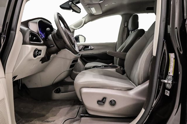 This Pacifica is well equipped with Quick Order Package 27W, SafetyTec (DISC) (Blind Spot & Cross Path Detection and ParkSense Rear Park Assist w/Stop), Security Group (DISC) (Remote Start System and Security Alarm), 17" x 7.0" Aluminum Wheels, 3.25 Axle Ratio, 3rd row seats: split-bench, 4-Wheel Disc Brakes, 6 Speakers, ABS brakes, Air Conditioning, Alloy wheels, AM/FM radio: SiriusXM, Apple CarPlay, Apple CarPlay/Android Auto, Automatic temperature control, Black Stow N Place Roof Rack, Brake assist, Bumpers: body-color, Cloth Bucket Seats, Compass, Delay-off headlights, Driver door bin, Driver vanity mirror, Driver's Seat Mounted Armrest, Dual front impact airbags, Dual front side impact airbags, Electronic Stability Control, Four wheel independent suspension, Front anti-roll bar, Front Bucket Seats, Front dual zone A/C, Front fog lights, Front reading lights, Fully automatic headlights, Garage door transmitter, Google Android Auto, GPS Antenna Input, Heated door mirrors, Illuminated entry, Integrated Voice Command w/Bluetooth, KeySense, Knee airbag, Low tire pressure warning, Manufacturer's Statement of Origin, Occupant sensing airbag, Outside temperature display, Overhead airbag, Overhead console, Panic alarm, ParkView Rear Back-Up Camera, Passenger door bin, Passenger seat mounted armrest, Passenger vanity mirror, Power door mirrors, Power driver seat, Power Liftgate, Power steering, Power windows, Radio data system, Radio: Uconnect 4 w/7" Display, Rear air conditioning, Rear reading lights, Rear window defroster, Rear window wiper, Reclining 3rd row seat, Remote keyless entry, Security system, SiriusXM Satellite Radio, Speed control, Split folding rear seat, Spoiler, Steering wheel mounted audio controls, Tachometer, Telescoping steering wheel, Tilt steering wheel, Toffee Seats, Touring Suspension, Traction control, Trip computer, USB Host Flip, Variably intermittent wipers, and Voltmeter.