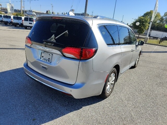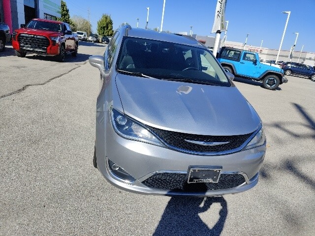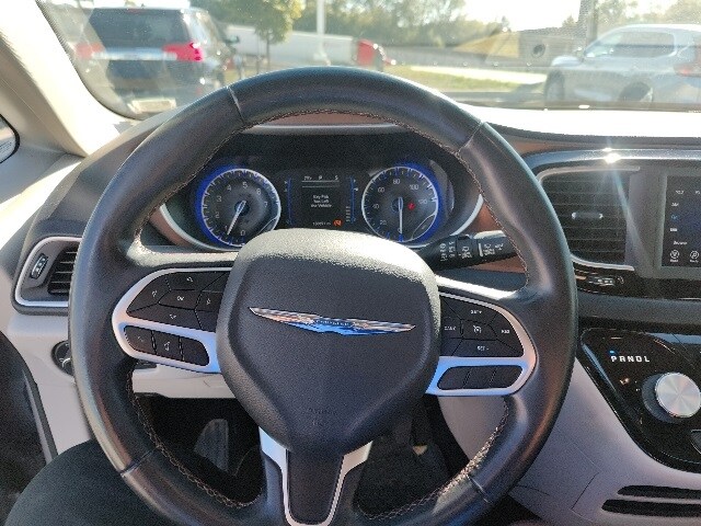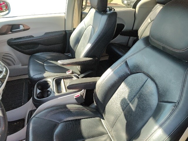 This Pacifica is well equipped with Quick Order Package 27L, 17" x 7.0" Aluminum Wheels, 3.25 Axle Ratio, 3rd row seats: split-bench, 4-Wheel Disc Brakes, 6 Speakers, ABS brakes, Air Conditioning, Alloy wheels, AM/FM radio: SiriusXM, Apple CarPlay, Apple CarPlay/Android Auto, Auto High-beam Headlights, Automatic temperature control, Black Seats, Bodyside moldings, Brake assist, Bumpers: body-color, Compass, Delay-off headlights, Driver door bin, Driver vanity mirror, Driver's Seat Mounted Armrest, Dual front impact airbags, Dual front side impact airbags, Electronic Stability Control, Emergency communication system: Uconnect Access, Four wheel independent suspension, Front anti-roll bar, Front Bucket Seats, Front dual zone A/C, Front fog lights, Front reading lights, Fully automatic headlights, Garage door transmitter, Google Android Auto, GPS Antenna Input, Heated door mirrors, Heated front seats, Illuminated entry, Integrated Voice Command w/Bluetooth, Knee airbag, Leather steering wheel, Low tire pressure warning, Occupant sensing airbag, Outside temperature display, Overhead airbag, Overhead console, Panic alarm, ParkView Rear Back-Up Camera, Passenger door bin, Passenger seat mounted armrest, Passenger vanity mirror, Perforated Leather Trim Bucket Seats, Power door mirrors, Power driver seat, Power Liftgate, Power steering, Power windows, Radio data system, Radio: Uconnect 4 w/7" Display, Rain sensing wipers, Rear air conditioning, Rear reading lights, Rear window defroster, Rear window wiper, Reclining 3rd row seat, Remote keyless entry, Roof rack, Security system, SiriusXM Satellite Radio, Speed control, Split folding rear seat, Spoiler, Steering wheel mounted audio controls, Tachometer, Telescoping steering wheel, Tilt steering wheel, Touring Suspension, Traction control, Trip computer, USB Host Flip, Variably intermittent wipers, and Voltmeter.