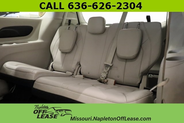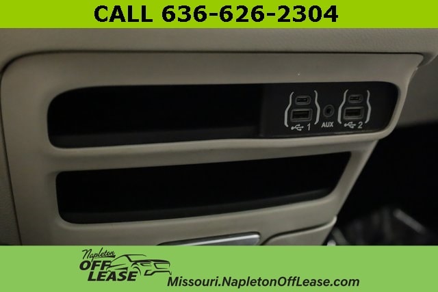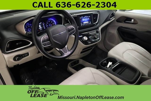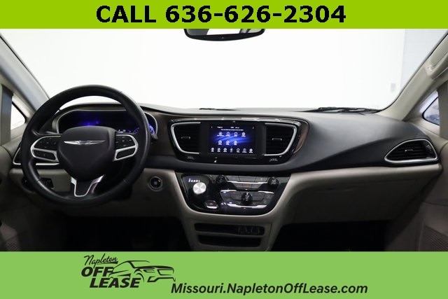This Voyager is well equipped with 17" x 7" Aluminum Wheels, 3.25 Axle Ratio, 3rd row seats: split-bench, 4-Wheel Disc Brakes, 6 Speakers, ABS brakes, Air Conditioning, Alloy Seats, Alloy wheels, AM/FM radio: SiriusXM, Apple CarPlay/Android Auto, Auto-dimming Rear-View mirror, Automatic temperature control, Brake assist, Bumpers: body-color, Compass, Delay-off headlights, Door auto-latch, Driver door bin, Driver vanity mirror, Driver's Seat Mounted Armrest, Dual front impact airbags, Dual front side impact airbags, Electronic Stability Control, Four wheel independent suspension, Front anti-roll bar, Front Bucket Seats, Front dual zone A/C, Front reading lights, Fully automatic headlights, Garage door transmitter, Heated door mirrors, Illuminated entry, Instrument Panel Anodized Silver Bezel, Knee airbag, Low tire pressure warning, Mineral Shitake Accents, Occupant sensing airbag, Outside temperature display, Overhead airbag, Overhead console, Panic alarm, ParkView Rear Back-Up Camera, Passenger door bin, Passenger seat mounted armrest, Passenger vanity mirror, Power door mirrors, Power driver seat, Power steering, Power windows, Radio data system, Radio: Uconnect 4 w/7" Display, Rear air conditioning, Rear reading lights, Rear window defroster, Rear window wiper, Reclining 3rd row seat, Remote keyless entry, Roof rack, Security system, Speed control, Split folding rear seat, Spoiler, Steering wheel mounted audio controls, Tachometer, Telescoping steering wheel, Tilt steering wheel, Touring Suspension, Traction control, Trip computer, Ultratec Leatherette Bucket Seats, Variably intermittent wipers, and Voltmeter.