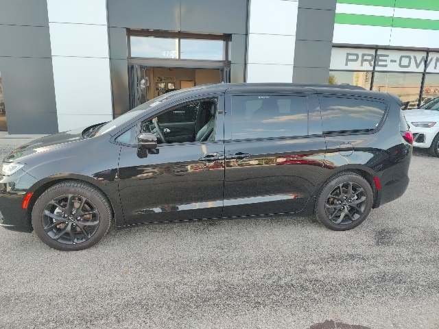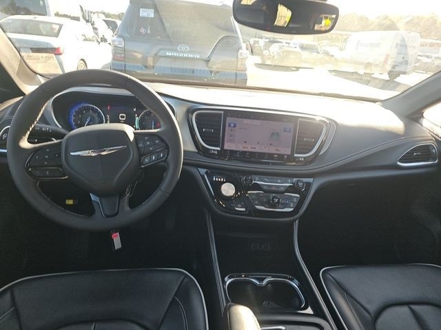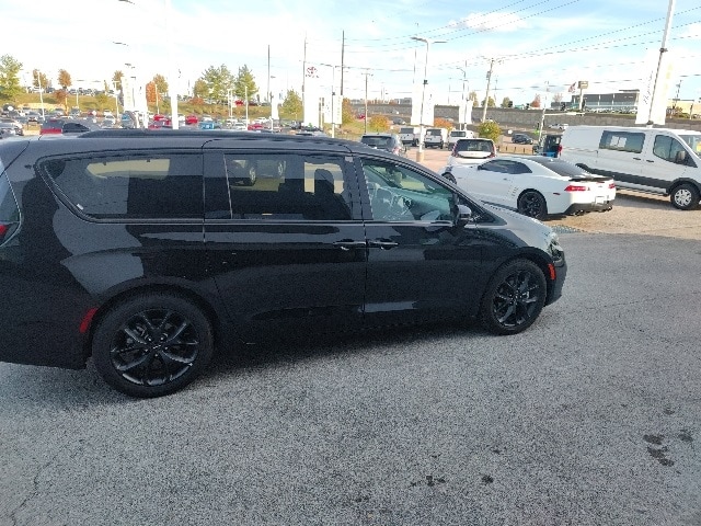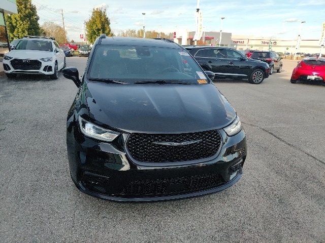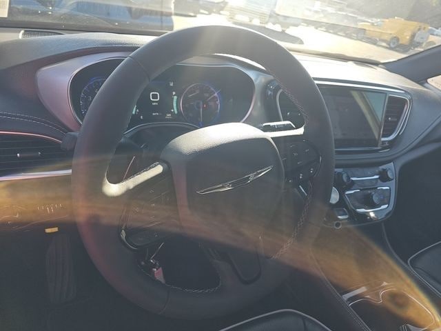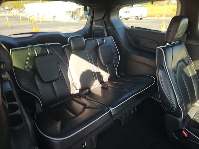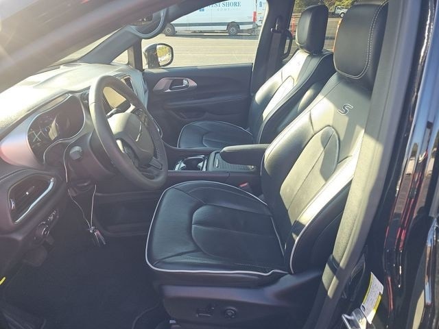 This Pacifica is well equipped with Quick Order Package 27P, 13 Speakers, 3.25 Axle Ratio, 3rd row seats: split-bench, 4-Wheel Disc Brakes, ABS brakes, Air Conditioning, Alloy wheels, AM/FM radio: SiriusXM 360L, Apple CarPlay/Android Auto, Audio memory, Auto-dimming Rear-View mirror, Automatic temperature control, Black Seats, Brake assist, Bumpers: body-color, Compass, Delay-off headlights, Driver door bin, Driver vanity mirror, Driver's Seat Mounted Armrest, Dual front impact airbags, Dual front side impact airbags, Electronic Stability Control, Emergency communication system: Chrysler Connect, Four wheel independent suspension, Front anti-roll bar, Front Bucket Seats, Front dual zone A/C, Front fog lights, Front reading lights, Fully automatic headlights, Garage door transmitter, Heated door mirrors, Heated front seats, Heated rear seats, Heated steering wheel, Illuminated entry, Integrated Active Noise Cancellation, Knee airbag, Low tire pressure warning, Memory seat, Nappa Leather Bucket Seats w/S Logo, Navigation System, Occupant sensing airbag, Outside temperature display, Overhead airbag, Overhead console, Panic alarm, ParkView Rear Back-Up Camera, Passenger door bin, Passenger seat mounted armrest, Passenger vanity mirror, Power door mirrors, Power driver seat, Power Liftgate, Power moonroof, Power passenger seat, Power steering, Power windows, Radio data system, Radio: Uconnect 5 Nav w/10.1" Display, Rain sensing wipers, Rear air conditioning, Rear reading lights, Rear window defroster, Rear window wiper, Reclining 3rd row seat, Remote keyless entry, Roof rack, Security system, Speed control, Split folding rear seat, Spoiler, Steering wheel mounted audio controls, Tachometer, Telescoping steering wheel, Tilt steering wheel, Touring Suspension, Traction control, Trip computer, Turn signal indicator mirrors, Variably intermittent wipers, Ventilated front seats, Voltmeter, and Wheels: 20" x 7.5" S-Model Aluminum Design 1.