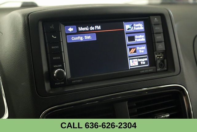 This Grand Caravan is well equipped with Quick Order Package 29S (Black Door Handles), 17" Wheel Covers, 17" x 6.5" Steel Wheels, 2nd Row Bench w/Rear Stow 'N Go 60/40, 3.16 Axle Ratio, 3rd row seats: split-bench, 4-Wheel Disc Brakes, 40GB Hard Drive w/28GB Available, 6 Speakers, 6.5" Touchscreen Display, ABS brakes, Air Conditioning, AM/FM radio, Anti-whiplash front head restraints, Audio Jack Input for Mobile Devices, Auto-dimming Rear-View mirror, Bodyside moldings, Brake assist, Bumpers: body-color, CD player, Cloth Low-Back Bucket Seats, Delay-off headlights, Driver door bin, Driver vanity mirror, Driver's Seat Mounted Armrest, Dual front impact airbags, Dual front side impact airbags, Electronic Stability Control, Front anti-roll bar, Front Bucket Seats, Front dual zone A/C, Front reading lights, Front wheel independent suspension, Heated door mirrors, Illuminated entry, Knee airbag, Low tire pressure warning, Occupant sensing airbag, Outside temperature display, Overhead airbag, Overhead console, Panic alarm, ParkView Rear Back-Up Camera, Passenger door bin, Passenger seat mounted armrest, Passenger vanity mirror, Power door mirrors, Power steering, Power windows, Radio: 430, Rear air conditioning, Rear window defroster, Rear window wiper, Reclining 3rd row seat, Remote keyless entry, Speed control, Spoiler, Steering Wheel Mounted Audio Controls, Steering wheel mounted audio controls, Tachometer, Telescoping steering wheel, Tilt steering wheel, Touring Suspension, Traction control, Trip computer, and Variably intermittent wipers.