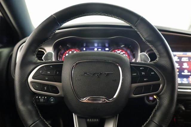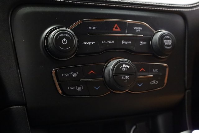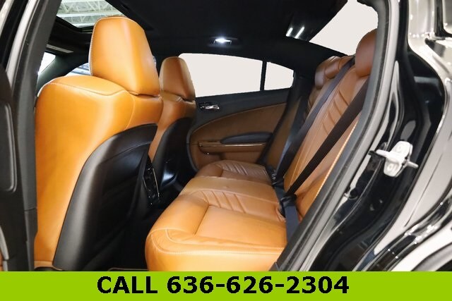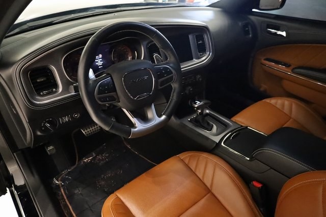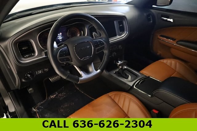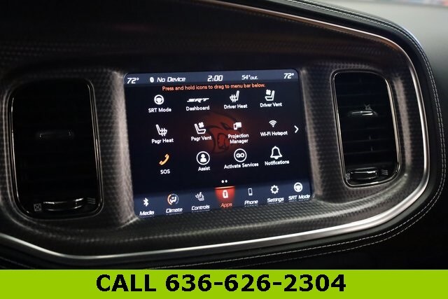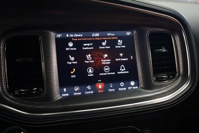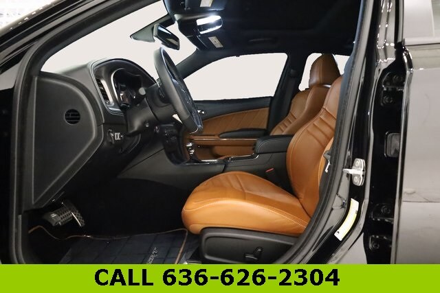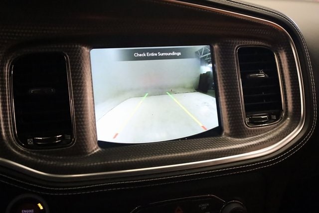 This Charger is well equipped with harman/kardon Audio Group (19 harman/kardon GreenEdge Speakers, harman/kardon GreenEdge Amp, and Surround Sound), Quick Order Package 23T SRT Hellcat, SRT Black Package (Black Charger Exhaust Tips, Satin Black Charger Decklid Badge, and Satin Black Dodge Tail Lamp Badge), Sepia/Black Leather, 4-Wheel Disc Brakes, 6 Speakers, ABS brakes, Air Conditioning, Alloy wheels, AM/FM radio: SiriusXM, Anti-whiplash front head restraints, Apple CarPlay, Apple CarPlay/Android Auto, Audio memory, Auto-dimming door mirrors, Auto-dimming Rear-View mirror, Automatic temperature control, Brake assist, Bumpers: body-color, Compass, Delay-off headlights, Driver door bin, Driver vanity mirror, Dual front impact airbags, Dual front side impact airbags, Electronic Stability Control, Emergency communication system: SiriusXM Guardian, Four wheel independent suspension, Front anti-roll bar, Front Bucket Seats, Front Center Armrest, Front dual zone A/C, Front reading lights, Fully automatic headlights, Garage door transmitter: HomeLink, Google Android Auto, GPS Antenna Input, Heated door mirrors, Heated Front Seats, Heated front seats, Heated rear seats, Heated steering wheel, Hellcat Logo Laguna Leather Seat, High intensity discharge headlights: Bi-Xenon, Illuminated entry, Integrated Center Stack Radio, Integrated Voice Command w/Bluetooth, Knee airbag, Leather Shift Knob, Low tire pressure warning, Media Hub (2 USB, AUX), Memory seat, Occupant sensing airbag, Outside temperature display, Overhead airbag, Overhead console, Panic alarm, ParkView Rear Back-Up Camera, Passenger door bin, Passenger vanity mirror, Power door mirrors, Power driver seat, Power passenger seat, Power steering, Power Sunroof, Power windows, Radio: Uconnect 4C w/8.4" Display, Rear anti-roll bar, Rear reading lights, Rear window defroster, Remote keyless entry, Security system, SiriusXM Satellite Radio, Speed control, Speed-Sensitive Wipers, Split folding rear seat, Spoiler, Sport steering wheel, Steering wheel mounted audio controls, Tachometer, Telescoping steering wheel, Tilt steering wheel, Traction control, Trip computer, USB Host Flip, Variably intermittent wipers, Ventilated front seats, and Wheels: 20" x 11" Carbon Black Aluminum.
