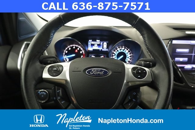 This Escape is well equipped with 18" Alloy Sparkle Nickel Wheels, 3.21 Axle Ratio, 4-Wheel Disc Brakes, 9 Speakers, ABS brakes, Air Conditioning, Alloy wheels, AM/FM radio: SiriusXM, AM/FM Single CD/MP3 Capable, Auto-dimming Rear-View mirror, Automatic temperature control, Brake assist, Bumpers: body-color, CD player, Compass, Delay-off headlights, Driver door bin, Driver vanity mirror, Dual front impact airbags, Dual front side impact airbags, Electronic Stability Control, Four wheel independent suspension, Front anti-roll bar, Front Bucket Seats, Front Center Armrest, Front dual zone A/C, Front fog lights, Front reading lights, Fully automatic headlights, Garage door transmitter, Heated door mirrors, Heated front seats, Heated Leather-Trimmed Buckets w/60/40 Rear Seat, Illuminated entry, Knee airbag, Leather Shift Knob, Low tire pressure warning, Memory seat, Occupant sensing airbag, Outside temperature display, Overhead airbag, Overhead console, Panic alarm, Passenger door bin, Passenger vanity mirror, Power door mirrors, Power driver seat, Power steering, Power windows, Radio data system, Rear anti-roll bar, Rear seat center armrest, Rear window defroster, Rear window wiper, Remote keyless entry, Security system, Speed control, Speed-sensing steering, Split folding rear seat, Steering wheel mounted audio controls, Tachometer, Telescoping steering wheel, Tilt steering wheel, Traction control, Trip computer, Turn signal indicator mirrors, and Variably intermittent wipers.