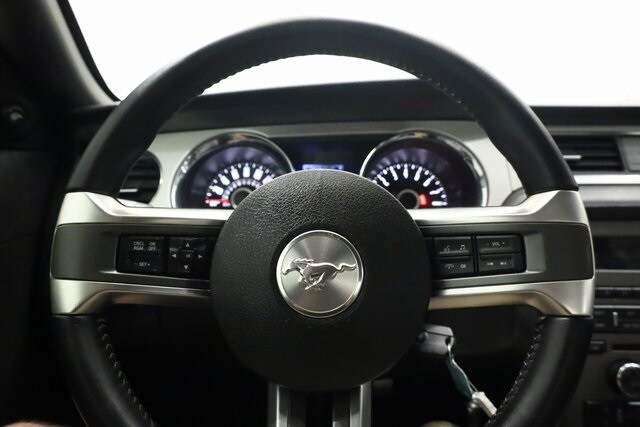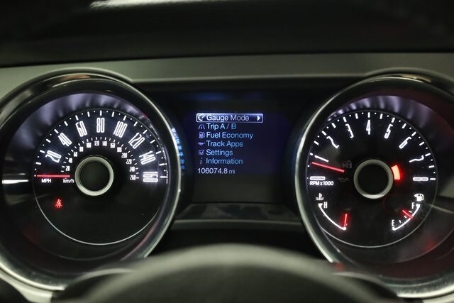 This Mustang is well equipped with 4-Wheel Disc Brakes, ABS brakes, Air Conditioning, Alloy wheels, Brake assist, Bumpers: body-color, CD player, Compass, Delay-off headlights, Driver door bin, Driver vanity mirror, Dual front impact airbags, Dual front side impact airbags, Electronic Stability Control, Front anti-roll bar, Front Bucket Seats, Front Center Armrest, Front reading lights, Front wheel independent suspension, High-Intensity Discharge Headlights, Illuminated entry, Low tire pressure warning, Occupant sensing airbag, Outside temperature display, Panic alarm, Passenger door bin, Passenger vanity mirror, Power door mirrors, Power steering, Power windows, Premium AM/FM Stereo w/Single CD/Clock, Radio data system, Rear anti-roll bar, Rear window defroster, Remote keyless entry, Speed control, Speed-sensing steering, Split folding rear seat, Steering wheel mounted audio controls, Tachometer, Tilt steering wheel, Traction control, Trip computer, and Variably intermittent wipers.
