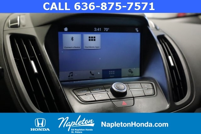 This Escape is well equipped with Equipment Group 201A, SE Cold Weather Package (110V/150W AC Power Outlet, All-Weather Floor Mats (Front & Rear), Heated Front Seats, Supplemental PTC Heater, and Windshield Wiper De-Icer), SE Technology Package (9 Speakers, Black Roof-Rack Side Rails, BLIS w/Cross Traffic Alert, Halogen Projector Headlamps, One-Touch-Up/Down Front & Rear Windows, Reverse Sensing System, SYNC 3 Communications & Entertainment System, and SYNC Connect), 3.21 Axle Ratio, 4-Wheel Disc Brakes, 6 Speakers, ABS brakes, Air Conditioning, Alloy wheels, AM/FM radio: SiriusXM, Automatic temperature control, Brake assist, Bumpers: body-color, CD player, Compass, Delay-off headlights, Driver door bin, Driver vanity mirror, Dual front impact airbags, Dual front side impact airbags, Electronic Stability Control, Emergency communication system: 911 Assist, Exterior Parking Camera Rear, Four wheel independent suspension, Front anti-roll bar, Front Bucket Seats, Front Center Armrest, Front dual zone A/C, Front fog lights, Front reading lights, Fully automatic headlights, Illuminated entry, Knee airbag, Low tire pressure warning, Occupant sensing airbag, Outside temperature display, Overhead airbag, Overhead console, Panic alarm, Passenger door bin, Passenger vanity mirror, Power door mirrors, Power driver seat, Power steering, Power windows, Radio data system, Radio: AM/FM Single CD/MP3, Rear anti-roll bar, Rear seat center armrest, Rear window defroster, Rear window wiper, Remote keyless entry, Speed control, Speed-sensing steering, Split folding rear seat, Steering wheel mounted audio controls, SYNC Communications & Entertainment System, Tachometer, Telescoping steering wheel, Tilt steering wheel, Traction control, Trip computer, Unique Cloth Buckets w/60/40 Split Rear Seat, Variably intermittent wipers, and Wheels: 17" Sparkle Silver Painted Aluminum.