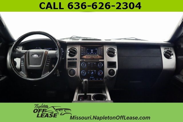 This Expedition is well equipped with GVWR: 7,520 lbs Payload Package, 4WD, 3.31 Axle Ratio, 3rd row seats: split-bench, 4-Wheel Disc Brakes, ABS brakes, Adjustable pedals, Air Conditioning, Alloy wheels, AM/FM radio: SiriusXM, Auto-dimming Rear-View mirror, Automatic temperature control, Brake assist, Bumpers: body-color, CD player, Compass, Delay-off headlights, Driver door bin, Driver vanity mirror, Dual front impact airbags, Dual front side impact airbags, Electronic Stability Control, Emergency communication system: 911 Assist, Exterior Parking Camera Rear, Four wheel independent suspension, Front anti-roll bar, Front Bucket Seats, Front Center Armrest, Front fog lights, Front reading lights, Fully automatic headlights, Garage door transmitter, Heated door mirrors, Illuminated entry, Leather steering wheel, License Plate Bracket, Low tire pressure warning, Occupant sensing airbag, Outside temperature display, Overhead airbag, Overhead console, Panic alarm, Passenger door bin, Passenger vanity mirror, Power door mirrors, Power driver seat, Power Liftgate, Power steering, Power windows, Radio data system, Rear air conditioning, Rear anti-roll bar, Rear audio controls, Rear reading lights, Rear window defroster, Rear window wiper, Remote keyless entry, Roof rack, Security system, SiriusXM Satellite Radio, Speed control, Speed-sensing steering, Speed-Sensitive Wipers, Split folding rear seat, Steering wheel mounted audio controls, SYNC 3 Communications & Entertainment System, Tachometer, Telescoping steering wheel, Tilt steering wheel, Traction control, Trip computer, Variably intermittent wipers, and Voltmeter.