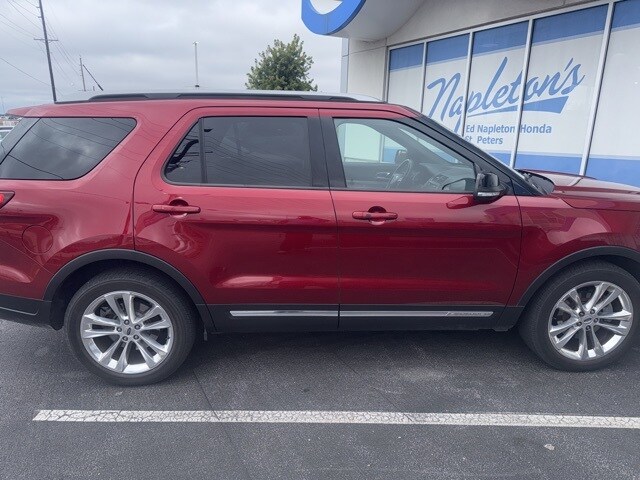 This Explorer is well equipped with Driver Connect Package (2 Driver Configurable 4.2" Color LCD Displays), Equipment Group 202A (Forward Sensing System, LED Fog Lamps, Power & Heated Glass Sideview Mirrors, Power Liftgate, Radio: AM/FM Stereo w/7 Speakers, and Remote Start System), XLT Technology Feature Bundle (Voice-Activated Touchscreen Navigation System), 20" Polished Aluminum Wheels, 2nd Row Bucket Seats, 3.39 Non-Limited-Slip Axle Ratio, 3rd row seats: split-bench, 4-Wheel Disc Brakes, 6 Speakers, ABS brakes, Air Conditioning, Alloy wheels, AM/FM radio: SiriusXM, AM/FM Stereo, Brake assist, Bumpers: body-color, Compass, Delay-off headlights, Driver door bin, Driver vanity mirror, Dual front impact airbags, Dual front side impact airbags, Electronic Stability Control, Emergency communication system: 911 Assist, Exterior Parking Camera Rear, Four wheel independent suspension, Front anti-roll bar, Front Bucket Seats, Front Center Armrest, Front reading lights, Fully automatic headlights, Heated door mirrors, Illuminated entry, Knee airbag, Leather steering wheel, Low tire pressure warning, Occupant sensing airbag, Outside temperature display, Overhead airbag, Overhead console, Panic alarm, Passenger door bin, Passenger vanity mirror, Power door mirrors, Power driver seat, Power passenger seat, Power steering, Power windows, Rear air conditioning, Rear anti-roll bar, Rear Parking Sensors, Rear reading lights, Rear seat center armrest, Rear window defroster, Rear window wiper, Remote keyless entry, Roof rack: rails only, Security system, Speed control, Speed-sensing steering, Speed-Sensitive Wipers, Split folding rear seat, Spoiler, Steering wheel mounted audio controls, SYNC Communication & Entertainment System, Tachometer, Telescoping steering wheel, Tilt steering wheel, Traction control, Trip computer, Variably intermittent wipers, and Wheels: 18" 5-Spoke Sparkle Silver-Painted Alum.
