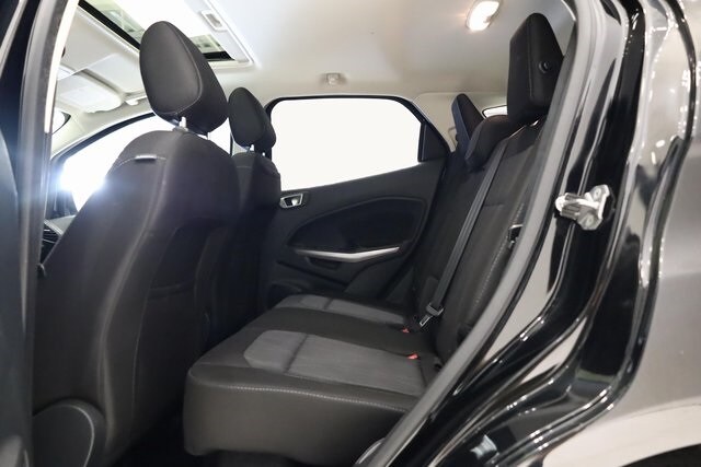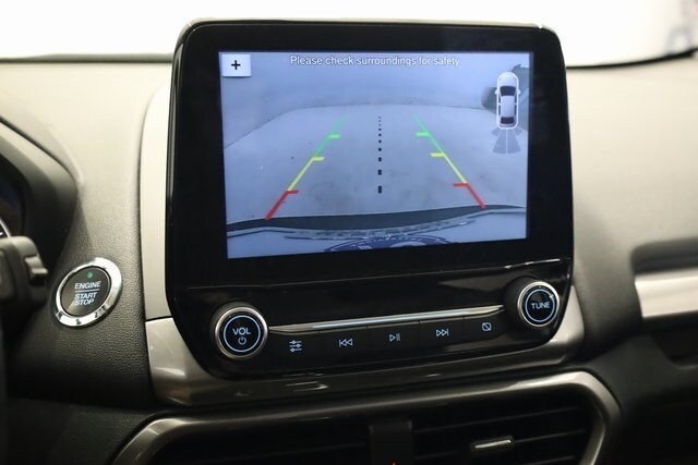 This EcoSport is well equipped with Equipment Group 200A, SE Convenience Package (110V/150W AC Power Outlet, 7 Speakers, Ambient Lighting, BLIS Blind Spot Information System, FordPass Connect, SiriusXM Traffic & Travel Link, and SYNC 3 Communications & Entertainment System w/47B), 3.44 Axle Ratio, 4-Wheel Disc Brakes, 6 Speakers, ABS brakes, Air Conditioning, Alloy wheels, AM/FM radio: SiriusXM, AppLink/Apple CarPlay and Android Auto, Automatic temperature control, Brake assist, Bumpers: body-color, Compass, Delay-off headlights, Driver door bin, Driver vanity mirror, Dual front impact airbags, Dual front side impact airbags, Electronic Stability Control, Emergency communication system: SYNC 3 911 Assist, Exterior Parking Camera Rear, Front anti-roll bar, Front Bucket Seats, Front Center Armrest, Front fog lights, Front reading lights, Front wheel independent suspension, Fully automatic headlights, Heated front seats, Illuminated entry, Knee airbag, Leather Shift Knob, Leather steering wheel, Low tire pressure warning, Occupant sensing airbag, Outside temperature display, Overhead airbag, Overhead console, Panic alarm, Passenger door bin, Passenger vanity mirror, Power door mirrors, Power driver seat, Power moonroof, Power steering, Power windows, Radio data system, Radio: AM/FM Stereo w/MP3 Capable, Rear Parking Sensors, Rear seat center armrest, Rear side impact airbag, Rear window defroster, Rear window wiper, Remote keyless entry, Roof rack: rails only, SiriusXM Radio, Speed control, Speed-sensing steering, Split folding rear seat, Steering wheel mounted audio controls, SYNC 3 Communications & Entertainment System, Tachometer, Telescoping steering wheel, Tilt steering wheel, Tire Inflator & Sealant Kit, Traction control, Trip computer, Turn signal indicator mirrors, Unique Cloth Heated Front Bucket Seats, Variably intermittent wipers, and Wheels: 16" Shadow Silver-Painted Aluminum.