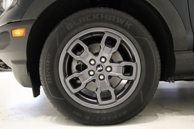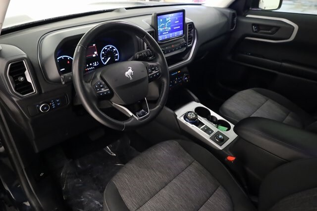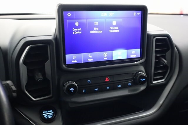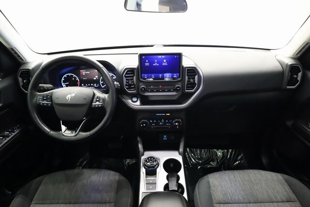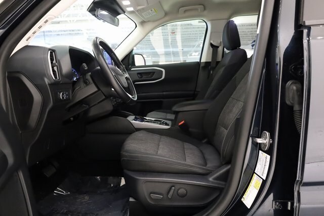 This Bronco Sport is well equipped with Big Bend Package (96B) (Heated Front Bucket Seats, Leather-Wrapped Steering Wheel, Reverse Sensing System, and Wireless Charging Pad), Equipment Group 200A, Ford Co-Pilot360 Assist+ (Evasive Steering Assist, Intelligent Adaptive Cruise Control w/Stop & Go, and Voice-Activated Touchscreen Navigation System), 3.80 Axle Ratio, 4-Wheel Disc Brakes, 6 Speakers, ABS brakes, Air Conditioning, Alloy wheels, AM/FM radio: SiriusXM, AM/FM Stereo, Auto High-beam Headlights, Automatic temperature control, Brake assist, Compass, Delay-off headlights, Driver door bin, Driver vanity mirror, Dual front impact airbags, Dual front side impact airbags, Electronic Stability Control, Emergency communication system: SYNC 3 911 Assist, Exterior Parking Camera Rear, Four wheel independent suspension, Front anti-roll bar, Front Bucket Seats, Front Center Armrest, Front fog lights, Front reading lights, Fully automatic headlights, Heated door mirrors, Illuminated entry, Knee airbag, Low tire pressure warning, Occupant sensing airbag, Outside temperature display, Overhead airbag, Overhead console, Panic alarm, Passenger door bin, Passenger vanity mirror, Power door mirrors, Power steering, Power windows, Radio data system, Rear anti-roll bar, Rear reading lights, Rear seat center armrest, Rear window defroster, Rear window wiper, Remote keyless entry, Roof rack: rails only, Security system, SiriusXM Radio, Speed control, Speed-sensing steering, Speed-Sensitive Wipers, Split folding rear seat, Steering wheel mounted audio controls, SYNC 3 Communications & Entertainment System, SYNC 3/Apple CarPlay/Android Auto, Tachometer, Telescoping steering wheel, Tilt steering wheel, Traction control, Trip computer, Unique Cloth Front Bucket Seats, Variably intermittent wipers, and Wheels: 17" Carbonized Gray-Painted Aluminum.
