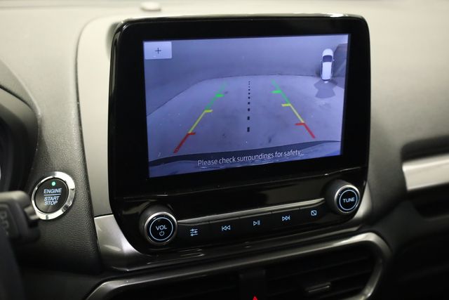 This EcoSport is well equipped with Equipment Group 200A, 3.44 Axle Ratio, 4-Wheel Disc Brakes, 6 Speakers, ABS brakes, Air Conditioning, Alloy wheels, AM/FM radio: SiriusXM, AppLink/Apple CarPlay and Android Auto, Automatic temperature control, Brake assist, Bumpers: body-color, Compass, Delay-off headlights, Driver door bin, Driver vanity mirror, Dual front impact airbags, Dual front side impact airbags, Electronic Stability Control, Emergency communication system: SYNC 3 911 Assist, Exterior Parking Camera Rear, Front anti-roll bar, Front Bucket Seats, Front Center Armrest, Front fog lights, Front reading lights, Front wheel independent suspension, Fully automatic headlights, Heated front seats, Illuminated entry, Knee airbag, Leather Shift Knob, Low tire pressure warning, Occupant sensing airbag, Outside temperature display, Overhead airbag, Overhead console, Panic alarm, Passenger door bin, Passenger vanity mirror, Power door mirrors, Power moonroof, Power steering, Power windows, Radio data system, Radio: AM/FM/MP3 Stereo, Rear Parking Sensors, Rear seat center armrest, Rear side impact airbag, Rear window defroster, Rear window wiper, Remote keyless entry, Roof rack: rails only, SiriusXM Radio, Speed control, Speed-sensing steering, Split folding rear seat, Steering wheel mounted audio controls, SYNC 3 Communications & Entertainment System, Tachometer, Telescoping steering wheel, Tilt steering wheel, Traction control, Trip computer, Turn signal indicator mirrors, Unique Cloth Heated Front Bucket Seats, Variably intermittent wipers, and Wheels: 16" Shadow Silver-Painted Aluminum.