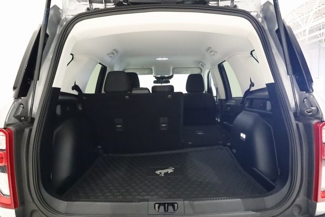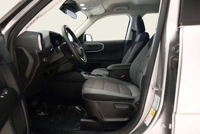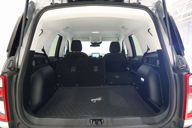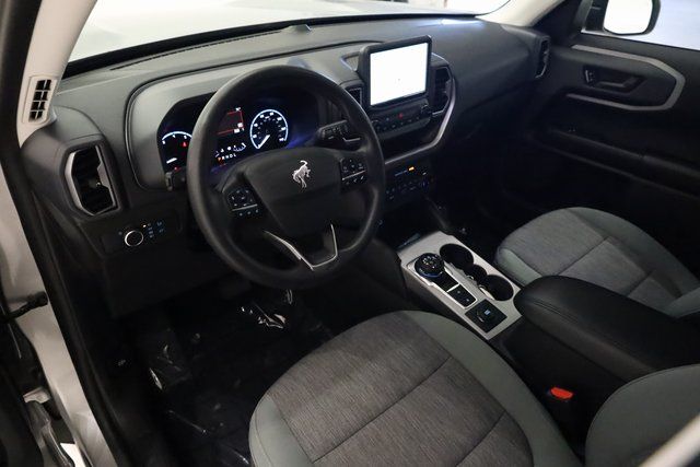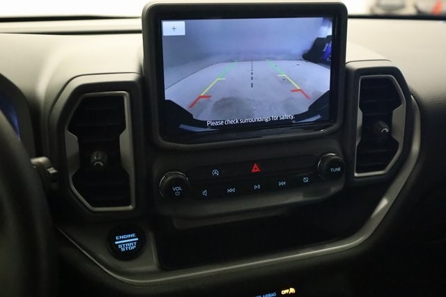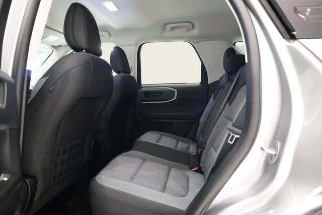 This Bronco Sport is well equipped with Equipment Group 200A, Ford Co-Pilot360 Assist+ (Evasive Steering Assist, Intelligent Adaptive Cruise Control w/Stop & Go, and Voice-Activated Touchscreen Navigation System), 3.80 Axle Ratio, 4-Wheel Disc Brakes, 6 Speakers, ABS brakes, Air Conditioning, Alloy wheels, AM/FM radio: SiriusXM, AM/FM Stereo, Auto High-beam Headlights, Automatic temperature control, Brake assist, Cargo Mat, Compass, Delay-off headlights, Driver door bin, Driver vanity mirror, Dual front impact airbags, Dual front side impact airbags, Electronic Stability Control, Emergency communication system: SYNC 3 911 Assist, Four wheel independent suspension, Front & Rear Floor Liners w/Carpet Mats, Front anti-roll bar, Front Bucket Seats, Front Center Armrest, Front reading lights, Fully automatic headlights, Heated door mirrors, Illuminated entry, Knee airbag, Low tire pressure warning, Occupant sensing airbag, Outside temperature display, Overhead airbag, Overhead console, Panic alarm, Passenger door bin, Passenger vanity mirror, Power door mirrors, Power steering, Power windows, Radio data system, Rear anti-roll bar, Rear reading lights, Rear seat center armrest, Rear window defroster, Rear window wiper, Remote keyless entry, Roof rack: rails only, Security system, SiriusXM Radio, Speed control, Speed-sensing steering, Speed-Sensitive Wipers, Split folding rear seat, Steering wheel mounted audio controls, SYNC 3 Communications & Entertainment System, SYNC 3/Apple CarPlay/Android Auto, Tachometer, Telescoping steering wheel, Tilt steering wheel, Traction control, Trip computer, Unique Cloth Front Bucket Seats, Variably intermittent wipers, and Wheels: 17" Carbonized Gray-Painted Aluminum.