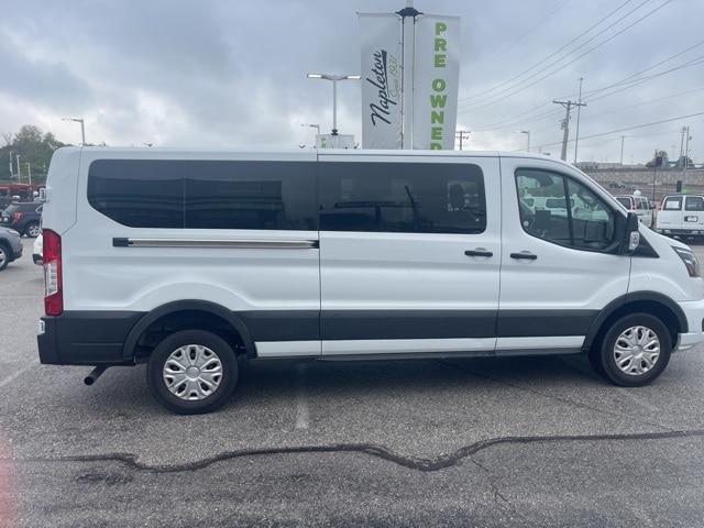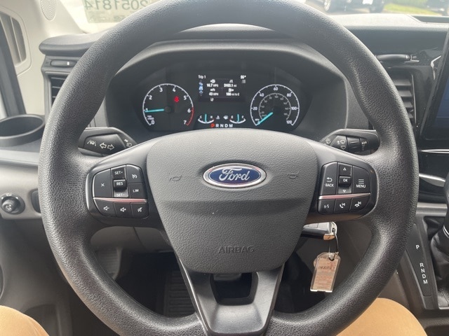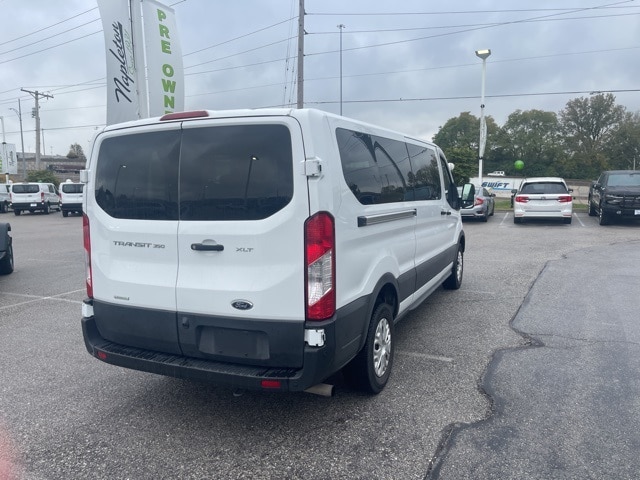This Transit-350 is well equipped with 3.73 Axle Ratio, 3rd row seats: split-bench, 4-Wheel Disc Brakes, 4th-Row Bench Seat, 8 Speakers, ABS brakes, Air Conditioning, AM/FM radio, Auto High-beam Headlights, Auto Start-Stop Delete, Brake assist, Cloth Front Bucket Seats, Delay-off headlights, Driver door bin, Driver vanity mirror, Driver's Seat Mounted Armrest, Dual front impact airbags, Dual front side impact airbags, Ebony Cloth Bucket Seats, Electronic Air Temperature Control, Electronic Stability Control, Front anti-roll bar, Front Bucket Seats, Front Fog Lamps, Front License Plate Bracket, Front reading lights, Front Sensing System, Front wheel independent suspension, Fully automatic headlights, Illuminated entry, Large Center Console, Low tire pressure warning, Occupant sensing airbag, Overhead airbag, Panic alarm, Passenger door bin, Passenger seat mounted armrest, Passenger vanity mirror, Power door mirrors, Power steering, Power windows, Privacy Glass, Radio: AM/FM Stereo w/SYNC 4 & Nav, Radio: AM/FM Stereo w/SYNC 4/SiriusXM w/360L/Nav, Rain sensing wipers, Rear air conditioning, Rear window defroster, Remote keyless entry, Reverse Sensing System, Side Sensing System, Steering wheel mounted audio controls, Tachometer, Telescoping steering wheel, Tilt steering wheel, Traction control, Variably intermittent wipers, and Wheels: 16" Steel w/Full Silver Cover.