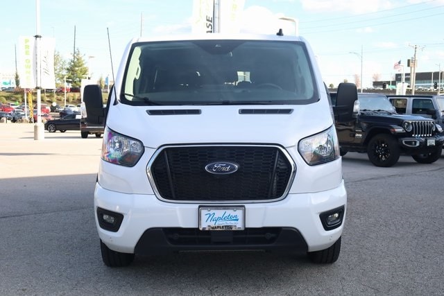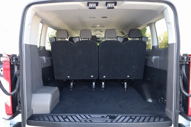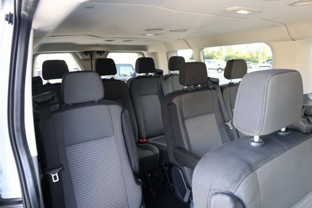 This Transit-350 is well equipped with 3.73 Axle Ratio, 3rd row seats: split-bench, 4-Wheel Disc Brakes, 4th-Row Bench Seat, 8 Speakers, ABS brakes, Air Conditioning, AM/FM radio, Auto High-beam Headlights, Auto Start-Stop Delete, Brake assist, Cloth Front Bucket Seats, Delay-off headlights, Driver door bin, Driver vanity mirror, Driver's Seat Mounted Armrest, Dual front impact airbags, Dual front side impact airbags, Ebony Cloth Bucket Seats, Electronic Air Temperature Control, Electronic Stability Control, Front anti-roll bar, Front Bucket Seats, Front Fog Lamps, Front License Plate Bracket, Front reading lights, Front Sensing System, Front wheel independent suspension, Fully automatic headlights, Illuminated entry, Large Center Console, Low tire pressure warning, Occupant sensing airbag, Overhead airbag, Panic alarm, Passenger door bin, Passenger seat mounted armrest, Passenger vanity mirror, Power door mirrors, Power Running Boards (DISC), Power steering, Power windows, Privacy Glass, Radio: AM/FM Stereo w/SYNC 4 & Nav, Radio: AM/FM Stereo w/SYNC 4/SiriusXM w/360L/Nav, Rain sensing wipers, Rear air conditioning, Rear window defroster, Remote keyless entry, Reverse Sensing System, Side Sensing System, Steering wheel mounted audio controls, Tachometer, Telescoping steering wheel, Tilt steering wheel, Traction control, Variably intermittent wipers, and Wheels: 16" Steel w/Full Silver Cover.