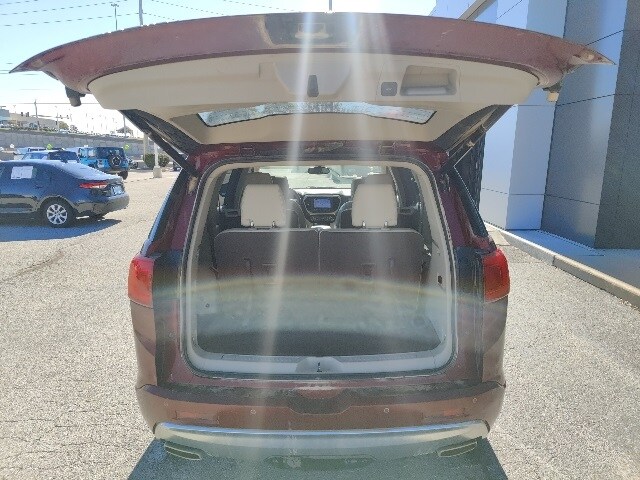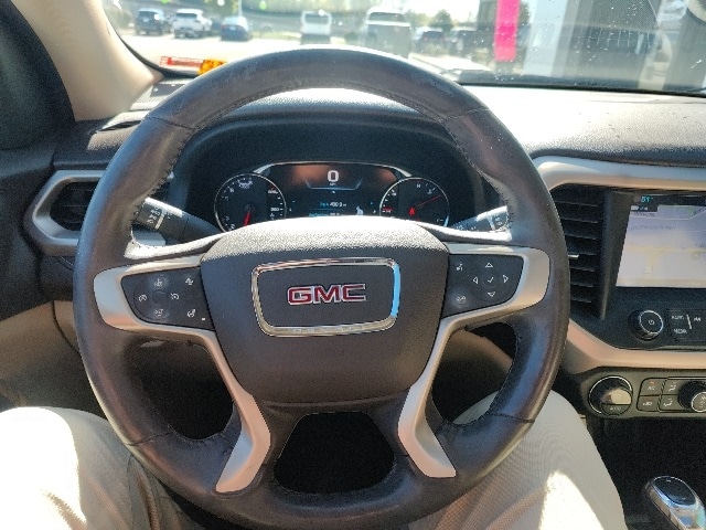 This Acadia is well equipped with Preferred Equipment Group 5SA (Electronic Cruise Control w/Set & Resume Speed), Technology Package (Forward Automatic Braking, Full Speed Adaptive Cruise Control w/Stop/Go, and Surround Vision System), FWD, Cocoa/ Shale Leather, 3.16 Axle Ratio, 3rd row seats: split-bench, 4-Wheel Disc Brakes, 6-Passenger (2-2-2 Seating Configuration), 8 Speakers, ABS brakes, Air Conditioning, Alloy wheels, AM/FM radio: SiriusXM, Apple CarPlay/Android Auto, Auto High-beam Headlights, Auto-dimming door mirrors, Auto-dimming Rear-View mirror, Automatic temperature control, Brake assist, Bumpers: body-color, Compass, Delay-off headlights, Driver door bin, Driver vanity mirror, Dual front impact airbags, Dual front side impact airbags, Dual SkyScape 2-Panel Power Sunroof, Electronic Stability Control, Emergency communication system: OnStar Guidance, Exterior Parking Camera Rear, Four wheel independent suspension, Front anti-roll bar, Front Bucket Seats, Front Center Armrest, Front dual zone A/C, Front fog lights, Front License Plate Bracket, Front reading lights, Fully automatic headlights, Garage door transmitter, Heated door mirrors, Heated front seats, Heated rear seats, Heated steering wheel, High-Intensity Discharge Headlights, Illuminated entry, Knee airbag, Low tire pressure warning, Memory seat, Navigation System, Occupant sensing airbag, Outside temperature display, Overhead airbag, Overhead console, Panic alarm, Passenger door bin, Passenger vanity mirror, Perforated Leather-Appointed Seat Trim, Power door mirrors, Power driver seat, Power Liftgate, Power passenger seat, Power steering, Power windows, Premium audio system: IntelliLink, Radio data system, Radio: AM/FM 8" Diagonal Color Touch Navigation, Rear air conditioning, Rear anti-roll bar, Rear reading lights, Rear window defroster, Rear window wiper, Remote keyless entry, Roof rack: rails only, Security system, SiriusXM Satellite Radio, Speed control, Speed-sensing steering, Spoiler, Steering wheel mounted audio controls, Tachometer, Telescoping steering wheel, Tilt steering wheel, Traction control, Trip computer, Variably intermittent wipers, Ventilated front seats, Voltmeter, and Wheels: 20" x 8" Polished Aluminum (4).