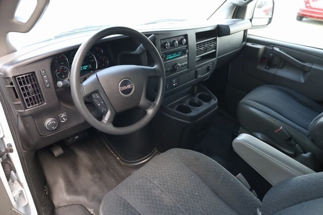 This Savana 2500 is well equipped with Chrome Appearance Package (Chrome Grille and Front & Rear Chrome Bumpers w/Step-Pad), Driver Convenience Package (Cruise Control and Tilt Steering Wheel), Preferred Equipment Group 1WT, 16" x 6.5" Steel Wheels, 2 Speakers, 3.42 Rear Axle Ratio, 4-Wheel Disc Brakes, ABS brakes, Air Conditioning, AM/FM radio, AM/FM Stereo w/MP3 Player, Black Rubberized-Vinyl Front Only Floor Covering, Delay-off headlights, Driver & Front Passenger High-Back Bucket Seats, Driver door bin, Driver's Seat Mounted Armrest, Dual front impact airbags, Dual front side impact airbags, Electronic Stability Control, Emergency communication system: OnStar and GMC connected services capable, Engine Cover Console w/Swing-Out Storage Bin, Exterior Parking Camera Rear, Fixed Rear Door Window Glass, Fixed Rear Side Door Window Glass, Front anti-roll bar, Front Bucket Seats, Front Reclining High-Back Bucket Seats, Front wheel independent suspension, Full-Length Black Rubberized-Vinyl Floor Covering, Fully automatic headlights, Heated door mirrors, Low tire pressure warning, Occupant sensing airbag, Overhead airbag, Passenger cancellable airbag, Passenger door bin, Passenger seat mounted armrest, Power door mirrors, Power steering, Power windows, Rear & Side Cargo Door Glass, Rear Side Door Glass Window Security Bar, Reclining Front Bucket Seats w/Inboard Armrests, Seat-Mounted & Roof-Rail Side-Impact Airbags, Single-Zone Manual Air Conditioning, Tachometer, Traction control, Trip computer, Variably intermittent wipers, Vinyl Seat Trim, and Voltmeter.