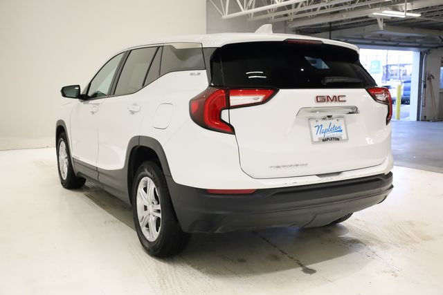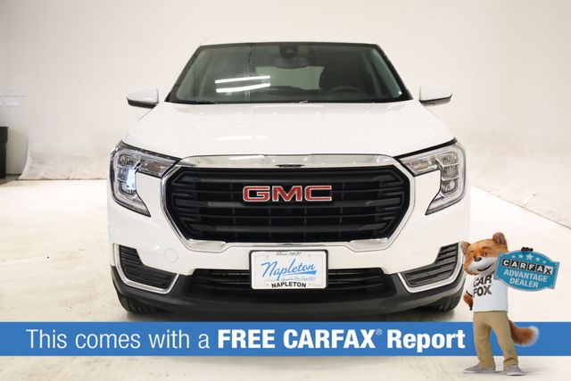 This Terrain is well equipped with License Plate Front Mounting Package, Preferred Equipment Group 3SA, 2 USB Data Ports w/Auxiliary Input Jack, 3.47 Final Drive Axle Ratio, 4-Way Manual Driver's Seat, 4-Way Manual Front Passenger Seat, 4-Wheel Disc Brakes, 4.2" Multi-Color Driver Information Screen, 6 Speakers, 6-Speaker Audio System Feature, ABS brakes, Air Conditioning, Alloy wheels, AM/FM radio: SiriusXM, Auto High-beam Headlights, Auto-dimming Rear-View mirror, Automatic temperature control, Bluetooth® For Phone, Brake assist, Bumpers: body-color, Compass, Delay-off headlights, Driver door bin, Driver vanity mirror, Dual front impact airbags, Dual front side impact airbags, Electronic Stability Control, Emergency communication system: OnStar and GMC connected services capable, Four wheel independent suspension, Front anti-roll bar, Front Bucket Seats, Front Center Armrest, Front reading lights, Fully automatic headlights, Heated door mirrors, Illuminated entry, Low tire pressure warning, Occupant sensing airbag, Outside temperature display, Overhead airbag, Overhead console, Panic alarm, Passenger door bin, Passenger vanity mirror, Power door mirrors, Power steering, Power windows, Premium Cloth Seat Trim, Radio data system, Radio: GMC Infotainment Audio System w/7" Display, Rear anti-roll bar, Rear seat center armrest, Rear window defroster, Rear window wiper, Remote keyless entry, Security system, SiriusXM, Speed control, Speed-sensing steering, Split folding rear seat, Spoiler, Steering wheel mounted audio controls, Tachometer, Telescoping steering wheel, Tilt steering wheel, Traction control, Trip computer, Variably intermittent wipers, Wheels: 17" x 7" Silver Painted Aluminum, and Wireless Apple CarPlay/Wireless Android Auto.