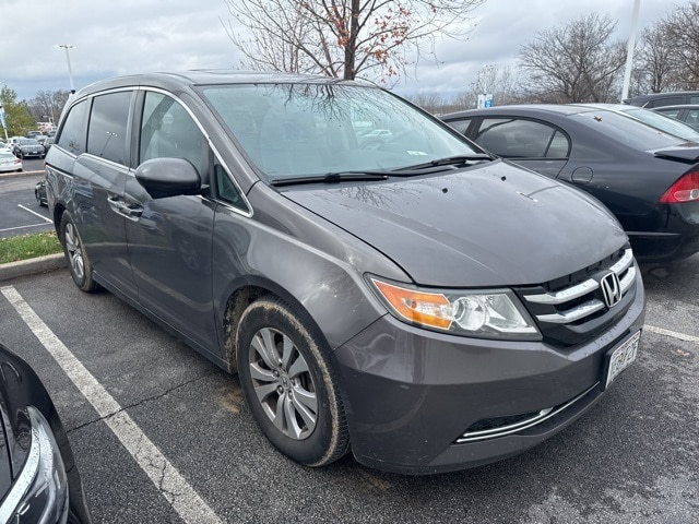 This Odyssey is well equipped with 17" x 7" Alloy Wheels, 3rd row seats: split-bench, 4-Wheel Disc Brakes, 4.25 Axle Ratio, 7 Speakers, ABS brakes, Air Conditioning, Alloy wheels, AM/FM radio: SiriusXM, Anti-whiplash front head restraints, Auto-dimming Rear-View mirror, Automatic temperature control, Brake assist, Bumpers: body-color, CD player, Delay-off headlights, Driver door bin, Driver vanity mirror, Driver's Seat Mounted Armrest, Dual front impact airbags, Dual front side impact airbags, Electronic Stability Control, Exterior Parking Camera Rear, Four wheel independent suspension, Front anti-roll bar, Front Bucket Seats, Front dual zone A/C, Front reading lights, Fully automatic headlights, Garage door transmitter: HomeLink, Heated door mirrors, Heated Front Bucket Seats, Heated front seats, Illuminated entry, Leather Seat Trim, Leather Shift Knob, Leather steering wheel, Low tire pressure warning, Occupant sensing airbag, Outside temperature display, Overhead airbag, Overhead console, Panic alarm, Passenger door bin, Passenger seat mounted armrest, Passenger vanity mirror, Power door mirrors, Power driver seat, Power Liftgate, Power moonroof, Power passenger seat, Power steering, Power windows, Radio data system, Rear air conditioning, Rear reading lights, Rear seat center armrest, Rear window defroster, Rear window wiper, Reclining 3rd row seat, Remote keyless entry, Security system, Speed control, Speed-sensing steering, Speed-Sensitive Wipers, Split folding rear seat, Spoiler, Steering wheel mounted audio controls, Tachometer, Telescoping steering wheel, Tilt steering wheel, Traction control, Trip computer, and Variably intermittent wipers.
