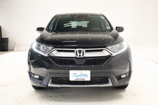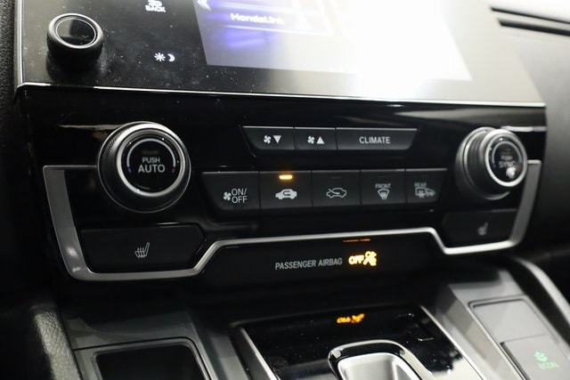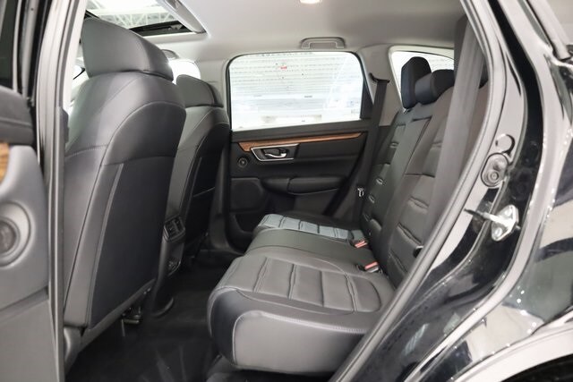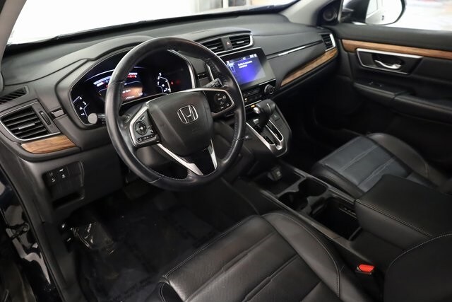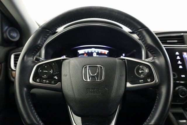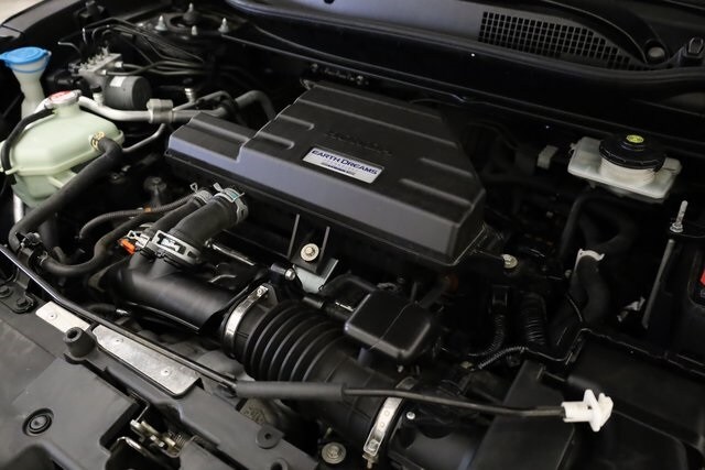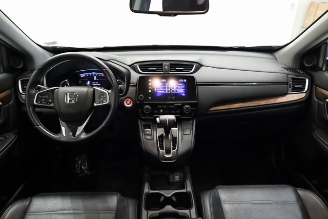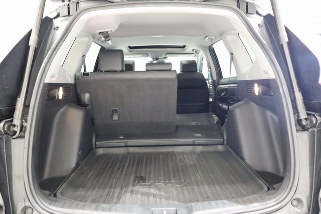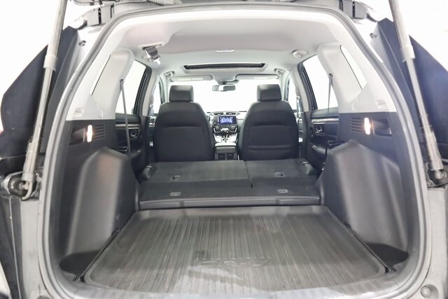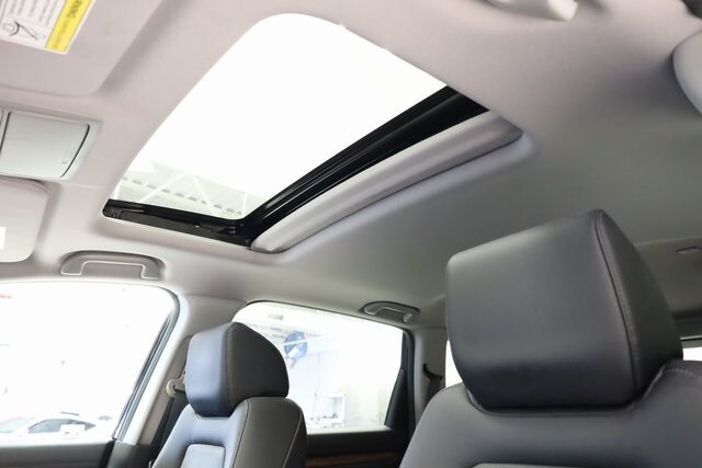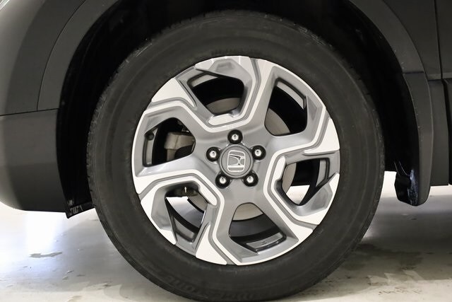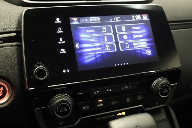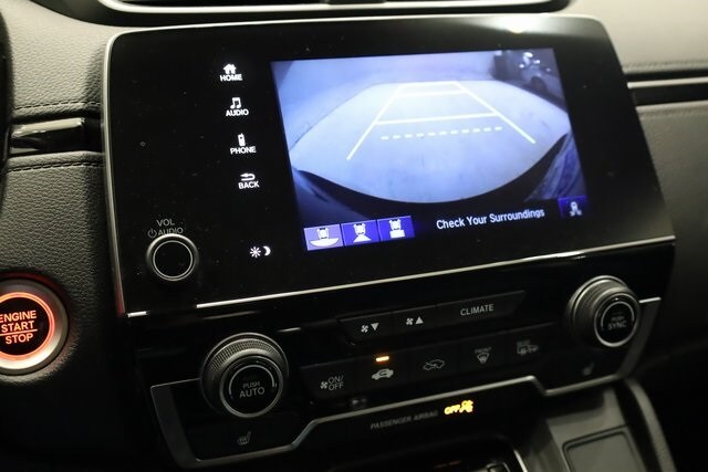 This CR-V is well equipped with AWD, 18" Alloy Wheels, 4-Wheel Disc Brakes, 5.64 Axle Ratio, 8 Speakers, ABS brakes, Air Conditioning, Alloy wheels, AM/FM radio: SiriusXM, Apple CarPlay/Android Auto, Auto High-beam Headlights, Auto-dimming Rear-View mirror, Automatic temperature control, Blind Spot Information (BSI) System warning, Brake assist, Bumpers: body-color, Compass, Delay-off headlights, Driver door bin, Driver vanity mirror, Dual front impact airbags, Dual front side impact airbags, Electronic Stability Control, Exterior Parking Camera Rear, Four wheel independent suspension, Front anti-roll bar, Front Bucket Seats, Front Center Armrest, Front dual zone A/C, Front fog lights, Front reading lights, Fully automatic headlights, Garage door transmitter: HomeLink, Heated door mirrors, Heated Front Bucket Seats, Heated front seats, Illuminated entry, Leather Seat Trim, Leather Shift Knob, Low tire pressure warning, Memory seat, Occupant sensing airbag, Outside temperature display, Overhead airbag, Overhead console, Panic alarm, Passenger door bin, Passenger vanity mirror, Power door mirrors, Power driver seat, Power Liftgate, Power moonroof, Power passenger seat, Power steering, Power windows, Radio data system, Radio: AM/FM/HD/SiriusXM Audio System, Rear anti-roll bar, Rear seat center armrest, Rear window defroster, Rear window wiper, Remote keyless entry, Security system, Speed control, Speed-sensing steering, Speed-Sensitive Wipers, Split folding rear seat, Spoiler, Steering wheel mounted audio controls, Tachometer, Telescoping steering wheel, Tilt steering wheel, Traction control, Trip computer, Turn signal indicator mirrors, and Variably intermittent wipers.