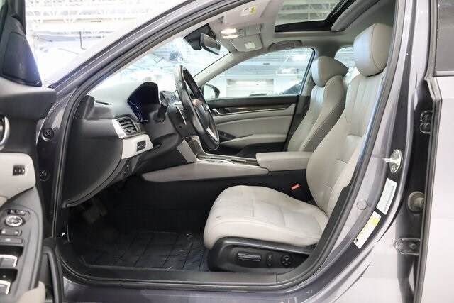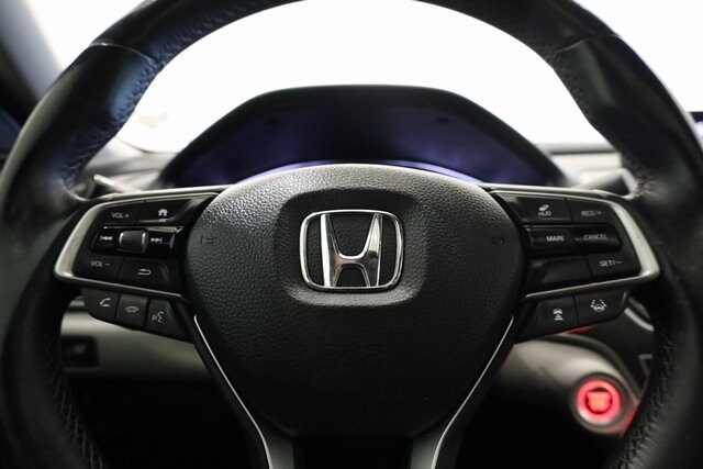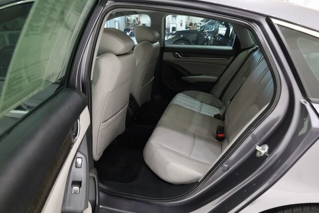 This Accord is well equipped with Gray w/Leather-Trimmed Seats, 10 Speakers, 4-Wheel Disc Brakes, ABS brakes, Adaptive suspension, Air Conditioning, Alloy wheels, AM/FM radio: SiriusXM, Apple CarPlay/Android Auto, Auto High-beam Headlights, Auto-dimming Rear-View mirror, Automatic temperature control, Blind Spot Information (BSI) System warning, Brake assist, Bumpers: body-color, Compass, Delay-off headlights, Driver door bin, Driver vanity mirror, Dual front impact airbags, Dual front side impact airbags, Electronic Stability Control, Emergency communication system: HondaLink, Exterior Parking Camera Rear, Four wheel independent suspension, Front anti-roll bar, Front Bucket Seats, Front Center Armrest, Front dual zone A/C, Front fog lights, Front reading lights, Fully automatic headlights, Garage door transmitter: HomeLink, Heads-Up Display, Heated & Ventilated Front Bucket Seats, Heated door mirrors, Heated front seats, Heated rear seats, Illuminated entry, Knee airbag, Leather Shift Knob, Leather steering wheel, Leather-Trimmed Seats, Low tire pressure warning, Memory seat, Navigation System, Occupant sensing airbag, Outside temperature display, Overhead airbag, Overhead console, Panic alarm, Passenger door bin, Passenger vanity mirror, Power door mirrors, Power driver seat, Power moonroof, Power passenger seat, Power steering, Power windows, Radio data system, Radio: 450-Watt AM/FM/HD Premium Audio System, Rain sensing wipers, Rear anti-roll bar, Rear seat center armrest, Rear window defroster, Remote keyless entry, Security system, Speed control, Speed-sensing steering, Speed-Sensitive Wipers, Split folding rear seat, Steering wheel mounted audio controls, Tachometer, Telescoping steering wheel, Tilt steering wheel, Traction control, Trip computer, Turn signal indicator mirrors, Variably intermittent wipers, Ventilated front seats, and Wheels: 19" Machine-Finished Alloy w/Gray Inserts.