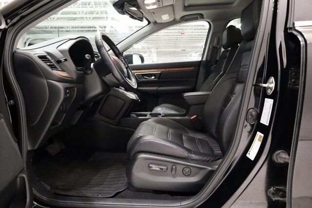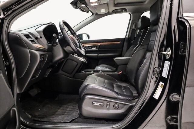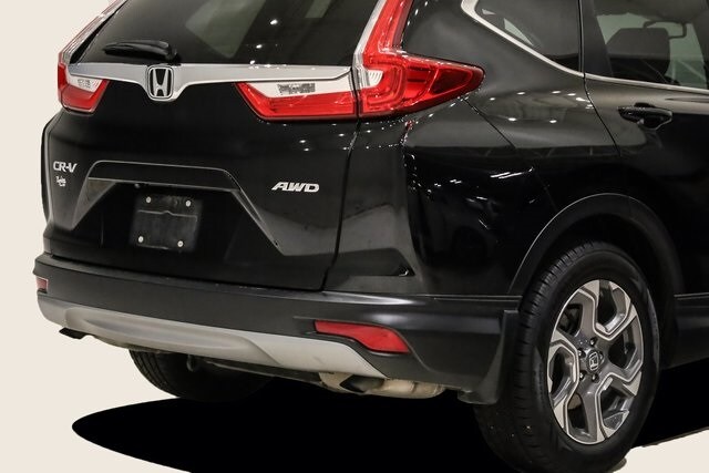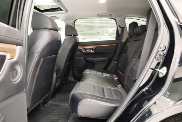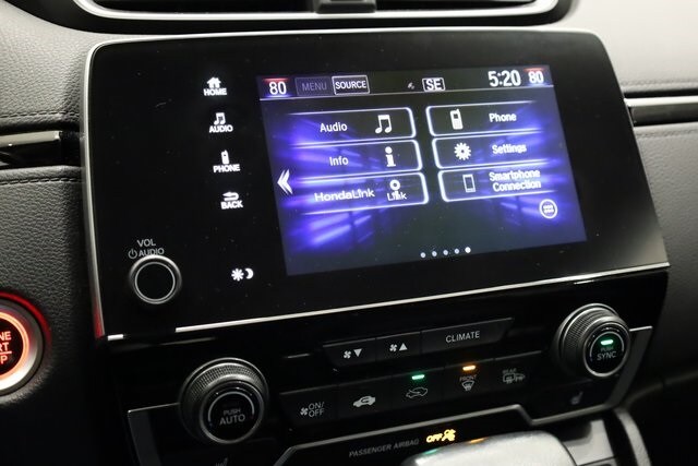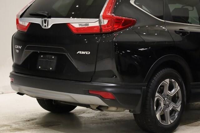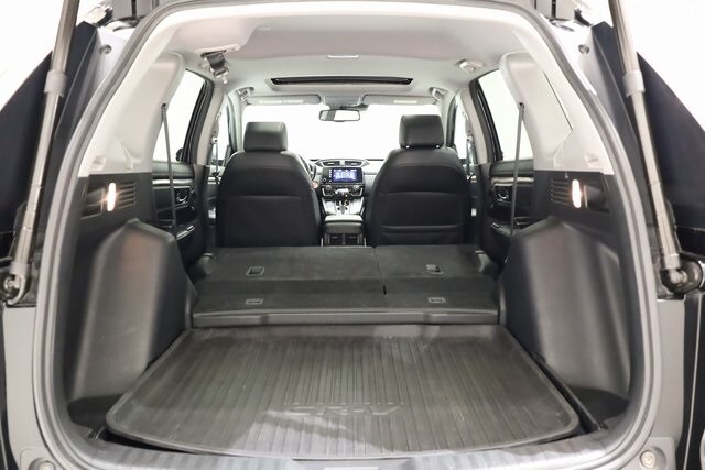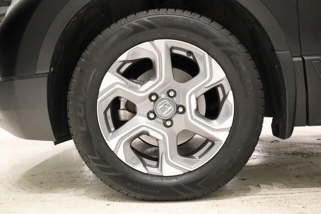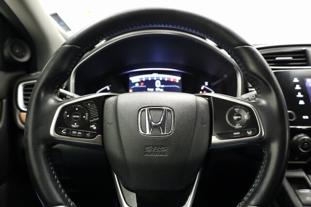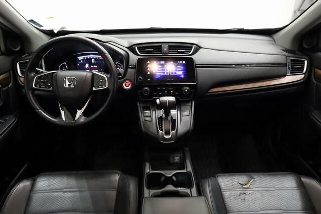 This CR-V is well equipped with AWD, 18" Alloy Wheels, 4-Wheel Disc Brakes, 5.64 Axle Ratio, 8 Speakers, ABS brakes, Air Conditioning, Alloy wheels, AM/FM radio: SiriusXM, Apple CarPlay/Android Auto, Auto High-beam Headlights, Auto-dimming Rear-View mirror, Automatic temperature control, Blind Spot Information (BSI) System warning, Brake assist, Bumpers: body-color, Compass, Delay-off headlights, Driver door bin, Driver vanity mirror, Dual front impact airbags, Dual front side impact airbags, Electronic Stability Control, Exterior Parking Camera Rear, Four wheel independent suspension, Front anti-roll bar, Front Bucket Seats, Front Center Armrest, Front dual zone A/C, Front fog lights, Front reading lights, Fully automatic headlights, Garage door transmitter: HomeLink, Heated door mirrors, Heated Front Bucket Seats, Heated front seats, Illuminated entry, Leather Seat Trim, Leather Shift Knob, Low tire pressure warning, Memory seat, Occupant sensing airbag, Outside temperature display, Overhead airbag, Overhead console, Panic alarm, Passenger door bin, Passenger vanity mirror, Power door mirrors, Power driver seat, Power Liftgate, Power moonroof, Power passenger seat, Power steering, Power windows, Radio data system, Radio: AM/FM/SiriusXM Audio System, Rear anti-roll bar, Rear seat center armrest, Rear window defroster, Rear window wiper, Remote keyless entry, Security system, Speed control, Speed-sensing steering, Speed-Sensitive Wipers, Split folding rear seat, Spoiler, Steering wheel mounted audio controls, Tachometer, Telescoping steering wheel, Tilt steering wheel, Traction control, Trip computer, Turn signal indicator mirrors, and Variably intermittent wipers.