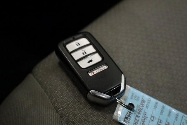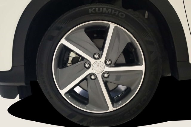 This HR-V is well equipped with 17" Machine-Finished Alloy Wheels, 4-Wheel Disc Brakes, 5.436 Axle Ratio, 6 Speakers, ABS brakes, Air Conditioning, Alloy wheels, AM/FM radio: SiriusXM, Apple CarPlay/Android Auto, Auto High-beam Headlights, Automatic temperature control, Brake assist, Bumpers: body-color, Cloth Seat Trim, Delay-off headlights, Driver door bin, Driver vanity mirror, Dual front impact airbags, Dual front side impact airbags, Electronic Stability Control, Emergency communication system, Exterior Parking Camera Rear, Forward collision: Collision Mitigation Braking System (CMBS) + FCW mitigation, Front anti-roll bar, Front Bucket Seats, Front Center Armrest, Front fog lights, Front reading lights, Front wheel independent suspension, Fully automatic headlights, Heated door mirrors, Heated Front Bucket Seats, Heated front seats, Illuminated entry, Low tire pressure warning, Occupant sensing airbag, Outside temperature display, Overhead airbag, Panic alarm, Passenger door bin, Passenger vanity mirror, Power door mirrors, Power moonroof, Power steering, Power windows, Radio data system, Radio: AM/FM/HD Audio System (180-Watt), Rear window defroster, Rear window wiper, Remote keyless entry, Roof rack: rails only, Security system, SiriusXM Radio, Speed control, Speed-sensing steering, Split folding rear seat, Spoiler, Steering wheel mounted audio controls, Tachometer, Telescoping steering wheel, Tilt steering wheel, Traction control, Trip computer, Turn signal indicator mirrors, and Variably intermittent wipers.