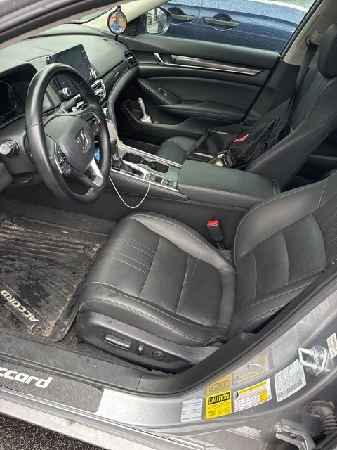 This Accord is well equipped with Black w/Perforated Leather Seat Trim, 4-Wheel Disc Brakes, 8 Speakers, ABS brakes, Adaptive Cruise Control: Adaptive Cruise Control (ACC) with Low-Speed Follow, Air Conditioning, Alloy wheels, AM/FM radio, Apple CarPlay/Android Auto, Auto High-beam Headlights, Automatic temperature control, Brake assist, Bumpers: body-color, Delay-off headlights, Driver door bin, Driver vanity mirror, Dual front impact airbags, Dual front side impact airbags, Electronic Stability Control, Emergency communication system: HondaLink, Exterior Parking Camera Rear, Forward collision: Collision Mitigation Braking System (CMBS) + FCW mitigation, Four wheel independent suspension, Front anti-roll bar, Front Bucket Seats, Front Center Armrest, Front dual zone A/C, Front fog lights, Front reading lights, Fully automatic headlights, Heated door mirrors, Heated Front Bucket Seats, Heated front seats, Illuminated entry, Knee airbag, Lane Departure Warning System, Leather Shift Knob, Leather steering wheel, Low tire pressure warning, Occupant sensing airbag, Outside temperature display, Overhead airbag, Overhead console, Panic alarm, Passenger door bin, Passenger vanity mirror, Perforated Leather Seat Trim, Power door mirrors, Power driver seat, Power passenger seat, Power steering, Power windows, Radio data system, Radio: 180-Watt AM/FM Audio System, Rear anti-roll bar, Rear seat center armrest, Rear window defroster, Remote keyless entry, Security system, Speed control, Speed-sensing steering, Speed-Sensitive Wipers, Split folding rear seat, Spoiler, Steering wheel mounted audio controls, Tachometer, Telescoping steering wheel, Tilt steering wheel, Traction control, Trip computer, Variably intermittent wipers, and Wheels: 19" Machine-Finished Alloy w/Black Inserts.