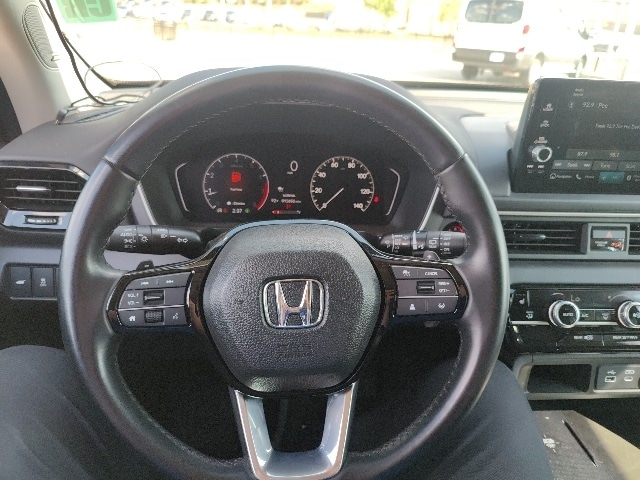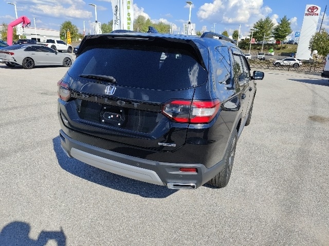 This Pilot is well equipped with AWD, 12 Speakers, 3rd row seats: split-bench, 4-Wheel Disc Brakes, ABS brakes, Adaptive Cruise Control: Adaptive Cruise Control (ACC) with Low-Speed Follow, Air Conditioning, Alloy wheels, AM/FM radio: SiriusXM, Apple CarPlay/Android Auto, Auto High-beam Headlights, Auto-dimming Rear-View mirror, Automatic temperature control, Axle Ratio: 4.167, Blind Spot Information (BSI) System warning, Bose Premium Sound System, Brake assist, Bumpers: body-color, Compass, Delay-off headlights, Driver door bin, Driver vanity mirror, Dual front impact airbags, Dual front side impact airbags, Electronic Stability Control, Emergency communication system: HondaLink, Four wheel independent suspension, Front anti-roll bar, Front Bucket Seats, Front Center Armrest, Front dual zone A/C, Front fog lights, Front reading lights, Fully automatic headlights, Garage door transmitter: HomeLink, Heated door mirrors, Heated Front Bucket Seats, Heated front seats, Illuminated entry, Knee airbag, Lane departure: Lane Keeping Assist System (LKAS) active, Leather Seat Trim, Low tire pressure warning, Memory seat, Navigation system: Honda Satellite-Linked Navigation System, Occupant sensing airbag, Outside temperature display, Overhead airbag, Overhead console, Panic alarm, Passenger door bin, Passenger vanity mirror, Power door mirrors, Power driver seat, Power Liftgate, Power moonroof, Power passenger seat, Power steering, Power windows, Radio data system, Rear air conditioning, Rear anti-roll bar, Rear reading lights, Rear seat center armrest, Rear window defroster, Rear window wiper, Reclining 3rd row seat, Remote keyless entry, Security system, Speed control, Speed-sensing steering, Speed-Sensitive Wipers, Split folding rear seat, Spoiler, Steering wheel mounted audio controls, Tachometer, Telescoping steering wheel, Tilt steering wheel, Traction control, Trip computer, Turn signal indicator mirrors, Variably intermittent wipers, and Wheels: 20" Machine Face Shark Gray w/Blk Lug Nuts.