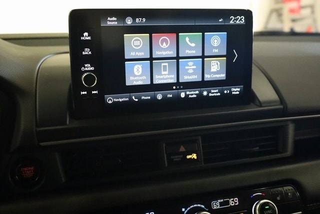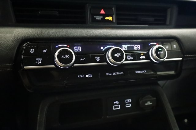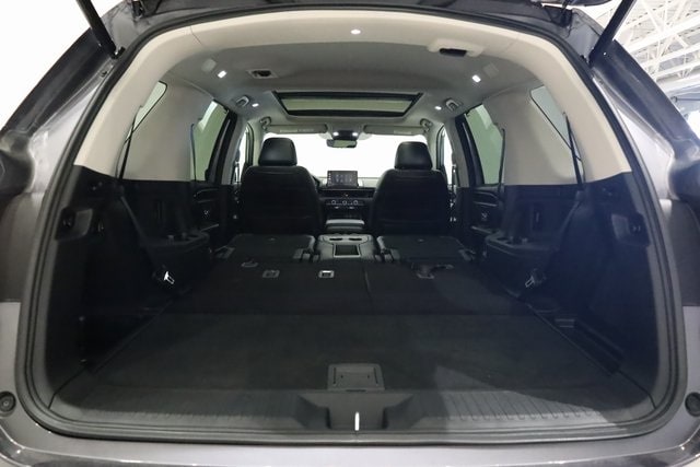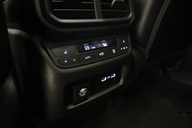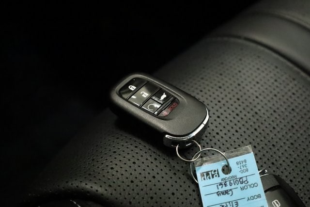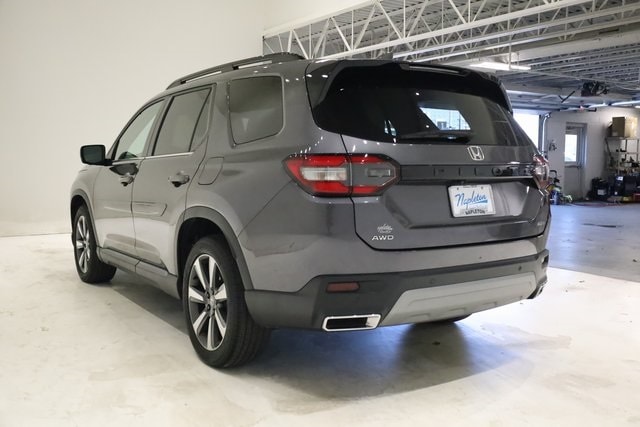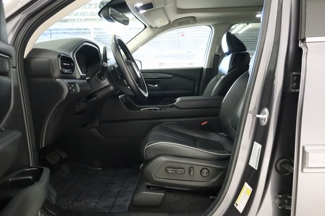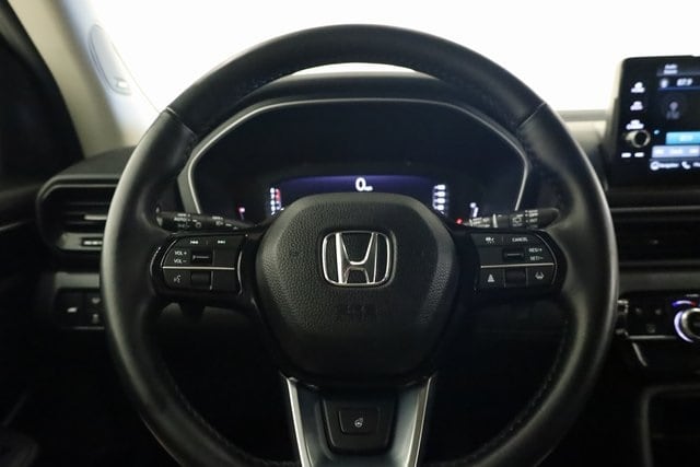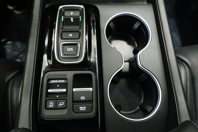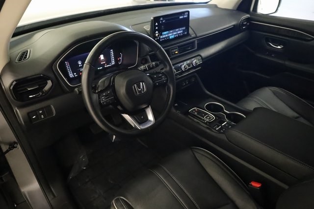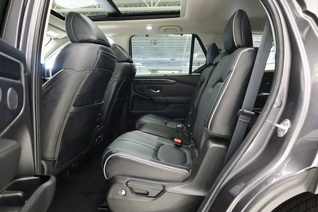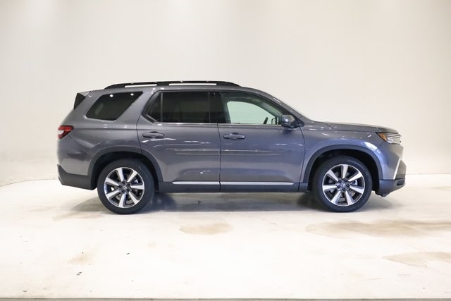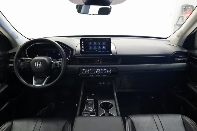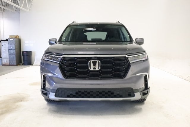 This Pilot is well equipped with AWD, 12 Speakers, 3rd row seats: split-bench, 4-Wheel Disc Brakes, ABS brakes, Adaptive Cruise Control: Adaptive Cruise Control (ACC) with Low-Speed Follow, Air Conditioning, Alloy wheels, AM/FM radio: SiriusXM, Apple CarPlay/Android Auto, Auto High-beam Headlights, Auto-dimming door mirrors, Auto-dimming Rear-View mirror, Automatic temperature control, Axle Ratio: 4.167, Blind Spot Information (BSI) System warning, Bose Premium Sound System, Brake assist, Bumpers: body-color, Compass, Delay-off headlights, Driver door bin, Driver vanity mirror, Dual front impact airbags, Dual front side impact airbags, Electronic Stability Control, Emergency communication system: HondaLink, Four wheel independent suspension, Front anti-roll bar, Front Bucket Seats, Front Center Armrest, Front dual zone A/C, Front fog lights, Front reading lights, Fully automatic headlights, Garage door transmitter: HomeLink, Heads-Up Display, Heated & Ventilated Front Bucket Seats, Heated door mirrors, Heated front seats, Heated rear seats, Heated steering wheel, Illuminated entry, Knee airbag, Lane departure: Lane Keeping Assist System (LKAS) active, Low tire pressure warning, Memory seat, Navigation system: Honda Satellite-Linked Navigation System, Occupant sensing airbag, Outside temperature display, Overhead airbag, Overhead console, Panic alarm, Passenger door bin, Passenger vanity mirror, Perforated Leather Seat Trim, Power door mirrors, Power driver seat, Power Liftgate, Power moonroof, Power passenger seat, Power steering, Power windows, Radio data system, Rain sensing wipers, Rear air conditioning, Rear anti-roll bar, Rear reading lights, Rear seat center armrest, Rear window defroster, Rear window wiper, Reclining 3rd row seat, Remote keyless entry, Security system, Speed control, Speed-sensing steering, Speed-Sensitive Wipers, Split folding rear seat, Spoiler, Steering wheel mounted audio controls, Tachometer, Telescoping steering wheel, Tilt steering wheel, Traction control, Trip computer, Turn signal indicator mirrors, Variably intermittent wipers, Ventilated front seats, and Wheels: 20" Machine Face Shark Gray w/Blk Lug Nuts.