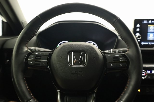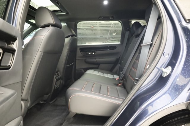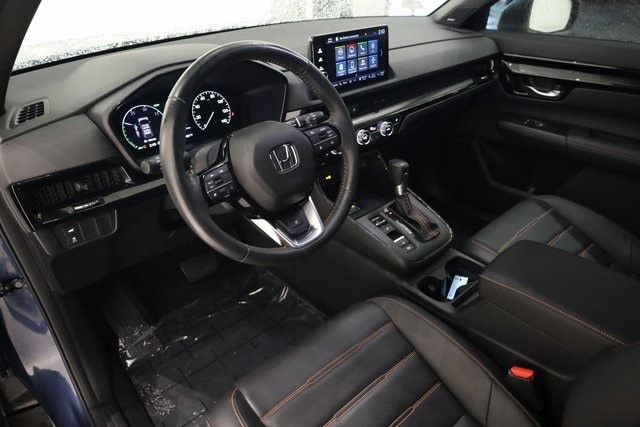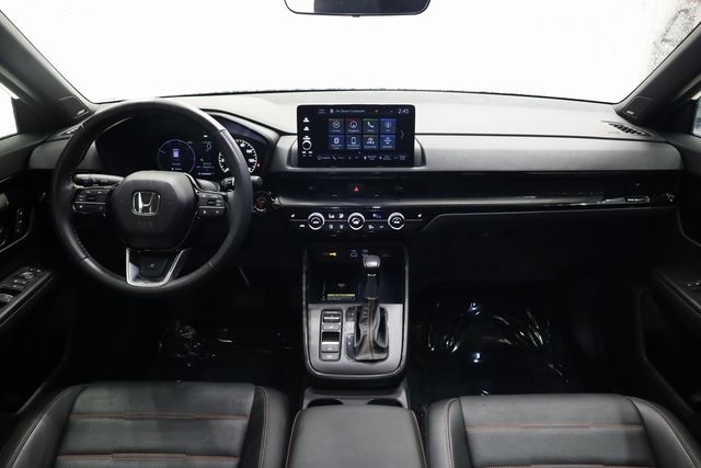 This CR-V Hybrid is well equipped with 2.0L I4 DOHC 16V, 12 Speakers, 4-Wheel Disc Brakes, 4.438 Axle Ratio, ABS brakes, Adaptive Cruise Control: Adaptive Cruise Control (ACC) with Low-Speed Follow, Air Conditioning, Alloy wheels, AM/FM radio: SiriusXM, Auto High-beam Headlights, Auto-dimming Rear-View mirror, Automatic temperature control, Blind Spot Information (BSI) System warning, Brake assist, Bumpers: body-color, Compass, Delay-off headlights, Driver door bin, Driver vanity mirror, Dual front impact airbags, Dual front side impact airbags, Electronic Stability Control, Exterior Parking Camera Rear, Four wheel independent suspension, Front anti-roll bar, Front Bucket Seats, Front Center Armrest, Front dual zone A/C, Front reading lights, Fully automatic headlights, Heated door mirrors, Heated Front Bucket Seats, Heated front seats, Heated steering wheel, Illuminated entry, Knee airbag, Leather Seat Trim, Leather Shift Knob, Leather steering wheel, Low tire pressure warning, Memory seat, Navigation system: Honda Satellite-Linked Navigation System, Occupant sensing airbag, Outside temperature display, Overhead airbag, Overhead console, Panic alarm, Passenger door bin, Passenger vanity mirror, Power door mirrors, Power driver seat, Power Liftgate, Power moonroof, Power passenger seat, Power steering, Power windows, Radio data system, Radio: Bose Premium Sound System w/Navigation, Rain sensing wipers, Rear anti-roll bar, Rear reading lights, Rear seat center armrest, Rear side impact airbag, Rear window defroster, Rear window wiper, Remote keyless entry, Security system, Speed control, Speed-sensing steering, Speed-Sensitive Wipers, Split folding rear seat, Spoiler, Steering wheel mounted audio controls, Telescoping steering wheel, Tilt steering wheel, Traction control, Trip computer, Turn signal indicator mirrors, Variably intermittent wipers, Wheels: 19" Berlina Black Alloy, and Wireless Apple CarPlay/Wireless Android Auto.