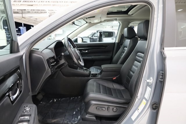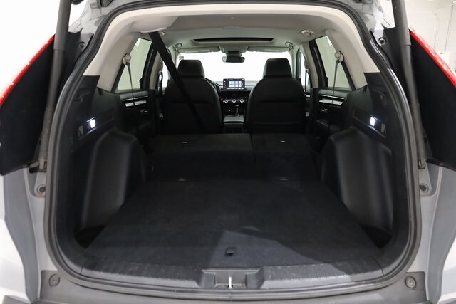 This CR-V is well equipped with AWD, 4-Wheel Disc Brakes, 5.64 Axle Ratio, 8 Speakers, ABS brakes, Adaptive Cruise Control: Adaptive Cruise Control (ACC) with Low-Speed Follow, Air Conditioning, Alloy wheels, AM/FM radio: SiriusXM, Auto High-beam Headlights, Auto-dimming Rear-View mirror, Automatic temperature control, Blind Spot Information (BSI) System warning, Brake assist, Bumpers: body-color, Compass, Delay-off headlights, Driver door bin, Driver vanity mirror, Dual front impact airbags, Dual front side impact airbags, Electronic Stability Control, Exterior Parking Camera Rear, Four wheel independent suspension, Front anti-roll bar, Front Bucket Seats, Front Center Armrest, Front dual zone A/C, Front reading lights, Fully automatic headlights, Heated door mirrors, Heated Front Bucket Seats, Heated front seats, Illuminated entry, Knee airbag, Leather Seat Trim, Leather Shift Knob, Leather steering wheel, Low tire pressure warning, Memory seat, Occupant sensing airbag, Outside temperature display, Overhead airbag, Overhead console, Panic alarm, Passenger door bin, Passenger vanity mirror, Power door mirrors, Power driver seat, Power Liftgate, Power moonroof, Power passenger seat, Power steering, Power windows, Radio data system, Radio: 320-Watt AM/FM/HD/SiriusXM Audio System, Rear anti-roll bar, Rear reading lights, Rear seat center armrest, Rear side impact airbag, Rear window defroster, Rear window wiper, Remote keyless entry, Security system, Speed control, Speed-sensing steering, Speed-Sensitive Wipers, Split folding rear seat, Spoiler, Steering wheel mounted audio controls, Tachometer, Telescoping steering wheel, Tilt steering wheel, Traction control, Trip computer, Turn signal indicator mirrors, Variably intermittent wipers, Wheels: 18" Sparkle Silver Metallic, and Wireless Apple CarPlay/Wireless Android Auto.