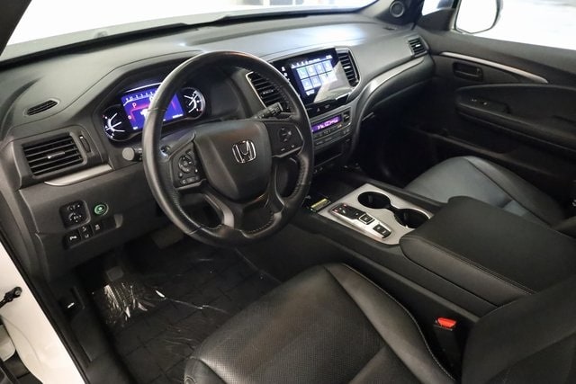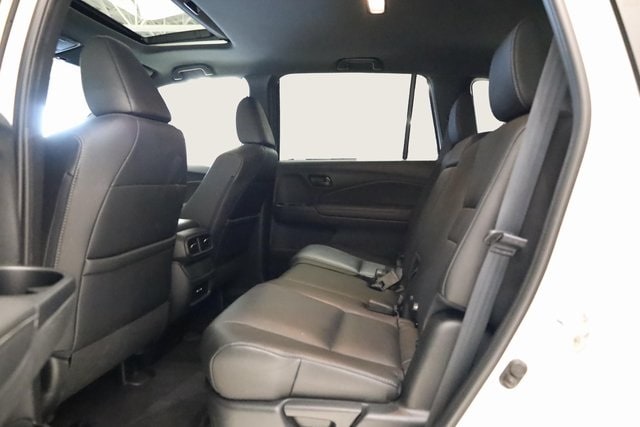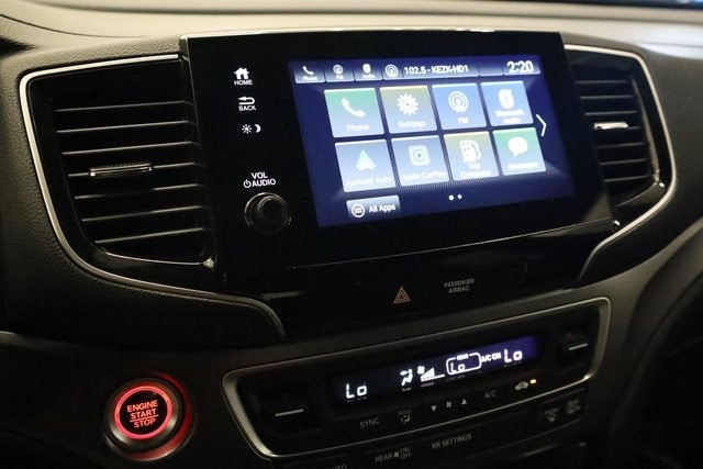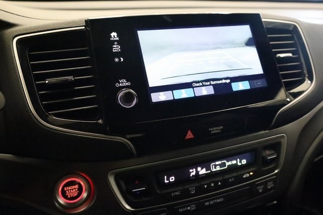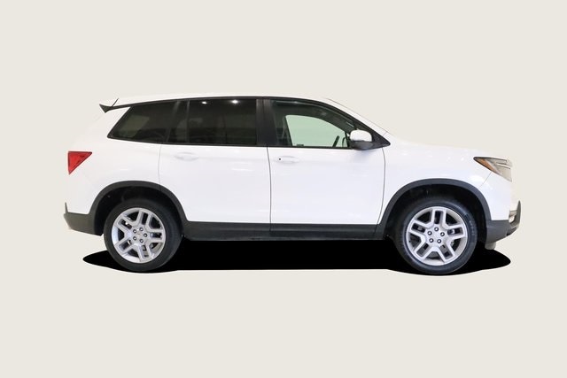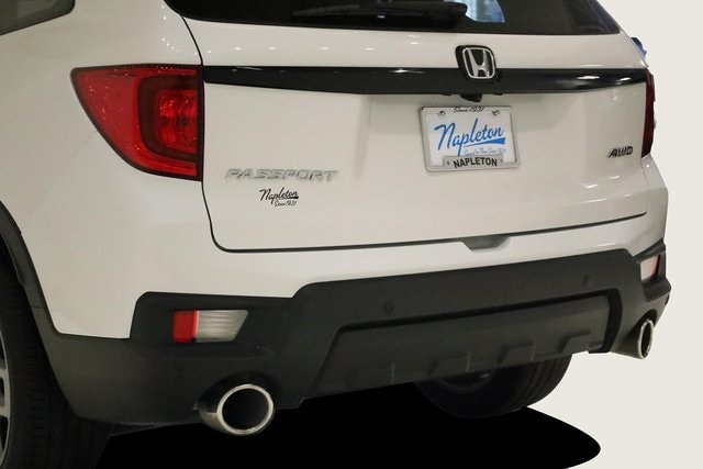 This Passport is well equipped with 4-Wheel Disc Brakes, 4.334 Axle Ratio, 7 Speakers, A/V remote: CabinControl, ABS brakes, Air Conditioning, Alloy wheels, AM/FM radio: SiriusXM, Apple CarPlay/Android Auto, Auto High-beam Headlights, Auto-dimming Rear-View mirror, Automatic temperature control, Blind Spot Information (BSI) System warning, Brake assist, Bumpers: body-color, Delay-off headlights, Driver door bin, Driver vanity mirror, Driver's Seat Mounted Armrest, Dual front impact airbags, Dual front side impact airbags, Electronic Stability Control, Emergency communication system: HondaLink Assist, Exterior Parking Camera Rear, Four wheel independent suspension, Front anti-roll bar, Front Bucket Seats, Front Center Armrest, Front dual zone A/C, Front reading lights, Fully automatic headlights, Garage door transmitter: HomeLink, Heated door mirrors, Heated Front Bucket Seats, Heated front seats, Illuminated entry, Lane departure: Lane Keeping Assist System (LKAS) active, Leather-Trimmed Seats, Low tire pressure warning, Occupant sensing airbag, Outside temperature display, Overhead airbag, Overhead console, Panic alarm, Passenger door bin, Passenger seat mounted armrest, Passenger vanity mirror, Power door mirrors, Power driver seat, Power Liftgate, Power moonroof, Power passenger seat, Power steering, Power windows, Radio data system, Radio: 215-Watt Audio System w/7 Speakers, Rear air conditioning, Rear anti-roll bar, Rear reading lights, Rear seat center armrest, Rear window defroster, Rear window wiper, Remote keyless entry, Security system, Speed control, Speed-sensing steering, Split folding rear seat, Spoiler, Steering wheel mounted audio controls, Tachometer, Telescoping steering wheel, Tilt steering wheel, Traction control, Trip computer, Turn signal indicator mirrors, Variably intermittent wipers, and Wheels: 20" Sparkle Silver Alloy.