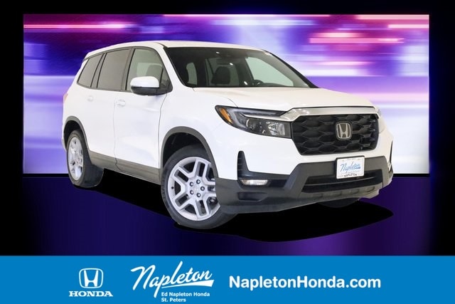 Ed Napleton Honda, conveniently located in St. Peters, MO at I-70 and Mid Rivers Mall Drive, is proud to present this 2024 Honda Passport EX-L. This well-equipped SUV comes with the balance of the factory warranty and offers a perfect mix of rugged capability, comfort, and modern technology. The EX-L trim features leather-trimmed seating, heated front seats, a power moonroof, tri-zone automatic climate control, and a power tailgate for added convenience. Stay connected with Apple CarPlay, Android Auto, Bluetooth, and a large touchscreen display. Safety is a priority with Honda Sensing® driver-assist features including adaptive cruise control, lane keeping assist, collision mitigation braking, and road departure mitigation. With its spacious interior, strong V6 performance, all-weather capability, and the peace of mind that comes with factory warranty coverage, this 2024 Honda Passport EX-L is an excellent choice for families and adventurers alike..