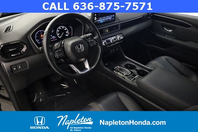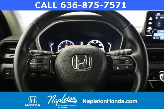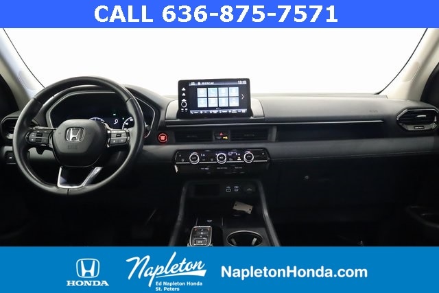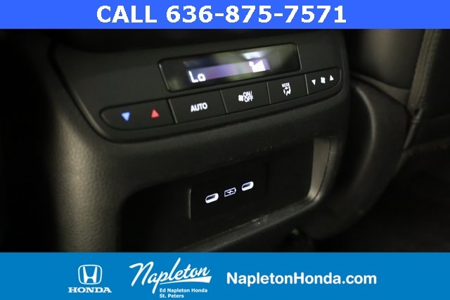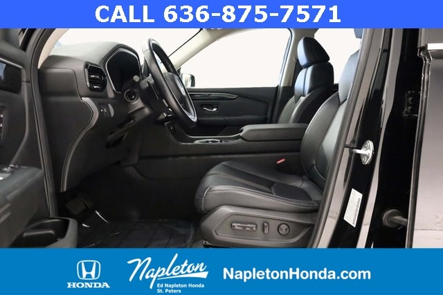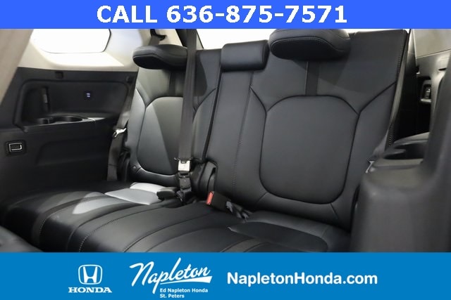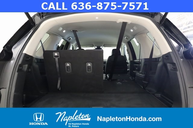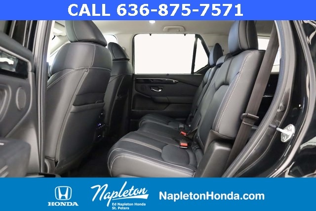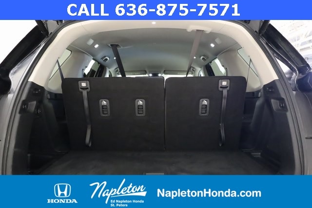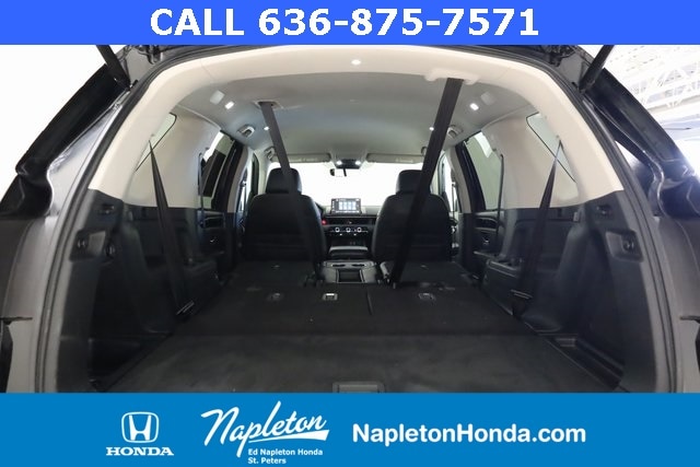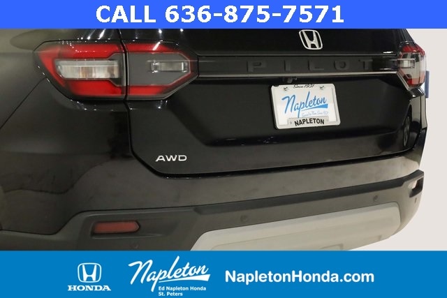 This Pilot is well equipped with AWD, 3rd row seats: split-bench, 4-Wheel Disc Brakes, 9 Speakers, ABS brakes, Adaptive Cruise Control: Adaptive Cruise Control (ACC) with Low-Speed Follow, Air Conditioning, Alloy wheels, AM/FM radio: SiriusXM, Apple CarPlay/Android Auto, Auto High-beam Headlights, Auto-dimming Rear-View mirror, Automatic temperature control, Axle Ratio: 4.167, Blind Spot Information (BSI) System warning, Brake assist, Bumpers: body-color, Delay-off headlights, Driver door bin, Driver vanity mirror, Dual front impact airbags, Dual front side impact airbags, Electronic Stability Control, Emergency communication system: HondaLink Assist, Exterior Parking Camera Rear, Four wheel independent suspension, Front anti-roll bar, Front Bucket Seats, Front Center Armrest, Front dual zone A/C, Front fog lights, Front reading lights, Fully automatic headlights, Garage door transmitter: HomeLink, Heated door mirrors, Heated Front Bucket Seats, Heated front seats, Illuminated entry, Knee airbag, Lane departure: Lane Keeping Assist System (LKAS) active, Leather Seat Trim, Low tire pressure warning, Memory seat, Occupant sensing airbag, Outside temperature display, Overhead airbag, Overhead console, Panic alarm, Passenger door bin, Passenger vanity mirror, Power door mirrors, Power driver seat, Power Liftgate, Power passenger seat, Power steering, Power windows, Radio data system, Radio: 245-Watt Audio System, Rear air conditioning, Rear anti-roll bar, Rear reading lights, Rear seat center armrest, Rear window defroster, Rear window wiper, Reclining 3rd row seat, Remote keyless entry, Security system, Speed control, Speed-sensing steering, Speed-Sensitive Wipers, Split folding rear seat, Spoiler, Steering wheel mounted audio controls, Tachometer, Telescoping steering wheel, Tilt steering wheel, Traction control, Trip computer, Turn signal indicator mirrors, Variably intermittent wipers, and Wheels: 18" Pewter Gray Machined Face.