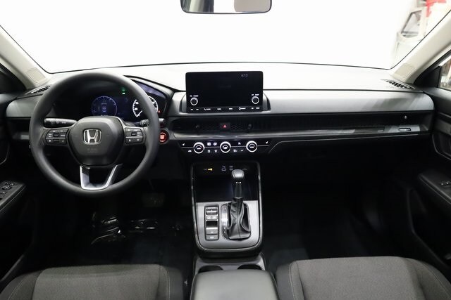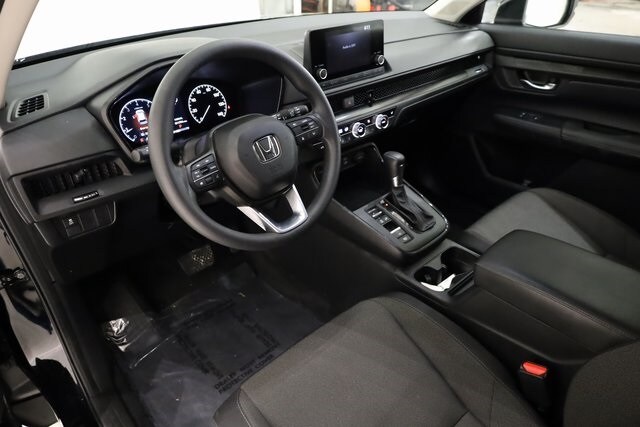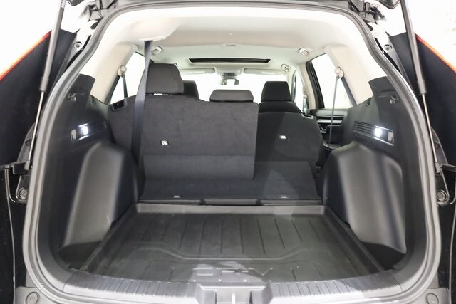 This CR-V is well equipped with AWD, 4-Wheel Disc Brakes, 6 Speakers, ABS brakes, Adaptive Cruise Control: Adaptive Cruise Control (ACC) with Low-Speed Follow, Air Conditioning, Alloy wheels, Apple CarPlay/Android Auto, Auto High-beam Headlights, Automatic temperature control, Blind Spot Information (BSI) System warning, Brake assist, Bumpers: body-color, Cloth Seat Trim, Compass, Delay-off headlights, Driver door bin, Driver vanity mirror, Dual front impact airbags, Dual front side impact airbags, Electronic Stability Control, Exterior Parking Camera Rear, Four wheel independent suspension, Front anti-roll bar, Front Bucket Seats, Front Center Armrest, Front dual zone A/C, Front reading lights, Fully automatic headlights, Heated door mirrors, Heated Front Bucket Seats, Heated front seats, Illuminated entry, Knee airbag, Low tire pressure warning, Occupant sensing airbag, Outside temperature display, Overhead airbag, Overhead console, Panic alarm, Passenger door bin, Passenger vanity mirror, Power door mirrors, Power driver seat, Power moonroof, Power steering, Power windows, Radio data system, Radio: 240-Watt AM/FM Audio System, Rear anti-roll bar, Rear reading lights, Rear seat center armrest, Rear side impact airbag, Rear window defroster, Rear window wiper, Remote keyless entry, Security system, Speed control, Speed-sensing steering, Speed-Sensitive Wipers, Split folding rear seat, Spoiler, Steering wheel mounted audio controls, Tachometer, Telescoping steering wheel, Tilt steering wheel, Traction control, Trip computer, Turn signal indicator mirrors, Variably intermittent wipers, and Wheels: 18" Sparkle Silver Metallic.