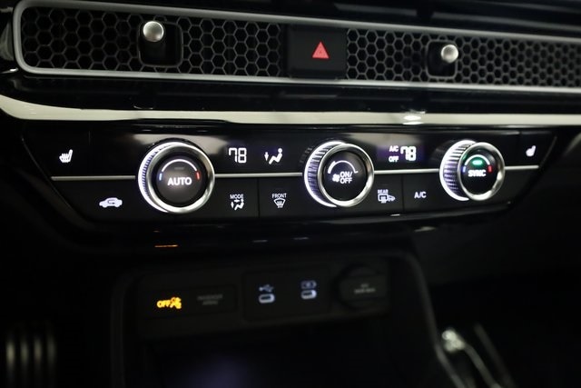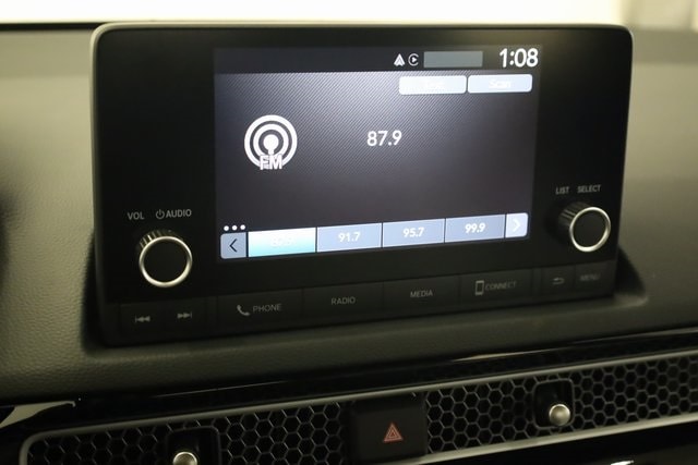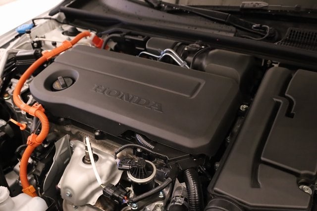 This Civic Hybrid is well equipped with 2.0L I4 DOHC 16V, 4-Wheel Disc Brakes, 8 Speakers, ABS brakes, Adaptive Cruise Control: Adaptive Cruise Control (ACC) with Low-Speed Follow, Air Conditioning, Alloy wheels, AM/FM radio, Apple CarPlay/Android Auto, Auto High-beam Headlights, Automatic temperature control, Blind Spot Information (BSI) System warning, Brake assist, Bumpers: body-color, Cloth/Leatherette Seat Trim, Delay-off headlights, Driver door bin, Driver vanity mirror, Dual front impact airbags, Dual front side impact airbags, Electronic Stability Control, Emergency communication system: HondaLink, Exterior Parking Camera Rear, Four wheel independent suspension, Front anti-roll bar, Front Bucket Seats, Front Center Armrest, Front dual zone A/C, Front reading lights, Fully automatic headlights, Heated door mirrors, Heated Front Bucket Seats, Heated front seats, Illuminated entry, Knee airbag, Lane departure: Lane Keeping Assist System (LKAS) active, Leather Shift Knob, Low tire pressure warning, Occupant sensing airbag, Outside temperature display, Overhead airbag, Panic alarm, Passenger door bin, Passenger vanity mirror, Power door mirrors, Power moonroof, Power steering, Power windows, Radio data system, Radio: 180-Watt Audio System, Rear anti-roll bar, Rear seat center armrest, Rear side impact airbag, Rear window defroster, Rear window wiper, Remote keyless entry, Security system, Speed control, Speed-sensing steering, Split folding rear seat, Steering wheel mounted audio controls, Tachometer, Telescoping steering wheel, Tilt steering wheel, Traction control, Trip computer, Variably intermittent wipers, and Wheels: 18" Gloss Black Alloy.