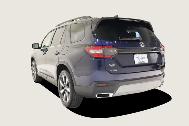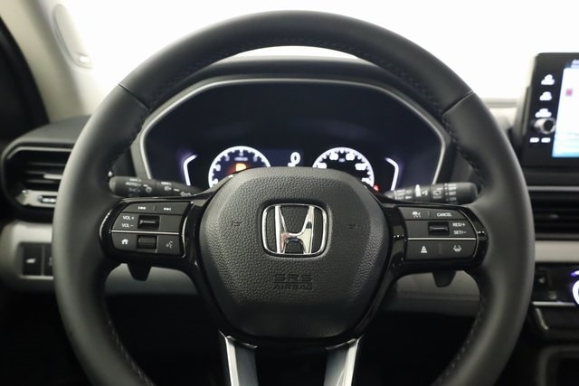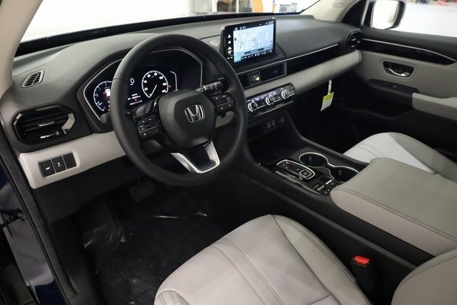 This Pilot is well equipped with AWD, 12 Speakers, 3rd row seats: split-bench, 4-Wheel Disc Brakes, 4.167 Axle Ratio, ABS brakes, Adaptive Cruise Control: Adaptive Cruise Control (ACC) with Low-Speed Follow, Air Conditioning, Alloy wheels, AM/FM radio: SiriusXM, Apple CarPlay/Android Auto, Auto High-beam Headlights, Auto-dimming Rear-View mirror, Automatic temperature control, Blind Spot Information (BSI) System warning, Bose Premium Sound System, Brake assist, Bumpers: body-color, Compass, Delay-off headlights, Driver door bin, Driver vanity mirror, Dual front impact airbags, Dual front side impact airbags, Electronic Stability Control, Emergency communication system: HondaLink, Exterior Parking Camera Rear, Four wheel independent suspension, Front anti-roll bar, Front Bucket Seats, Front Center Armrest, Front dual zone A/C, Front fog lights, Front reading lights, Fully automatic headlights, Garage door transmitter: HomeLink, Heated door mirrors, Heated Front Bucket Seats, Heated front seats, Honda Satellite-Linked Navigation System, HondaLink Subscription Services, Illuminated entry, Knee airbag, Lane departure: Lane Keeping Assist System (LKAS) active, Leather Seat Trim, Low tire pressure warning, Memory seat, Navigation system: Honda Satellite-Linked Navigation System, Occupant sensing airbag, Outside temperature display, Overhead airbag, Overhead console, Panic alarm, Passenger door bin, Passenger vanity mirror, Power door mirrors, Power driver seat, Power Liftgate, Power moonroof, Power passenger seat, Power steering, Power windows, Radio data system, Rear air conditioning, Rear anti-roll bar, Rear reading lights, Rear seat center armrest, Rear window defroster, Rear window wiper, Reclining 3rd row seat, Remote keyless entry, Security system, SiriusXM, Speed control, Speed-sensing steering, Speed-Sensitive Wipers, Split folding rear seat, Spoiler, Steering wheel mounted audio controls, Tachometer, Telescoping steering wheel, Tilt steering wheel, Traction control, Trip computer, Turn signal indicator mirrors, Variably intermittent wipers, and Wheels: 20" Shark Gray Machine Face w/Blk Lug Nuts.