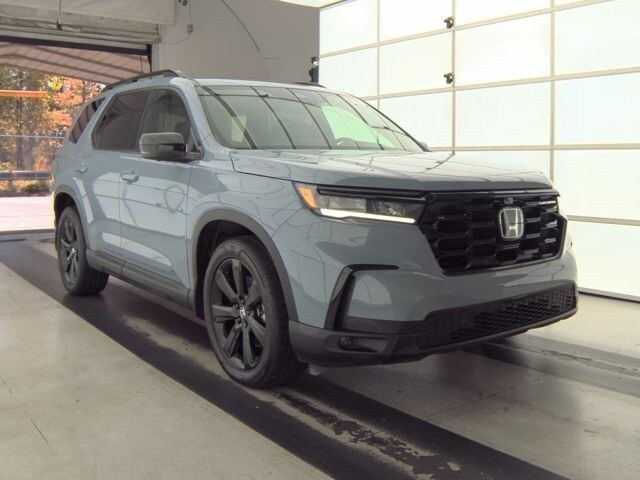 Recent Arrival! CARFAX One-Owner. Sonic Gray Pearl 2025 Honda Pilot Black Edition 3.5L V6 DOHC 24V AWD Clean CARFAX.