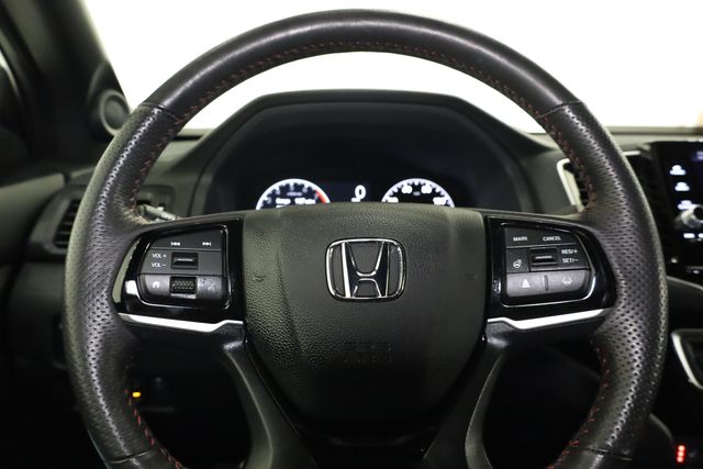 The Ridgeline Black Edition's thoughtfully designed interior offers unparalleled comfort and convenience. Sink into the heated and ventilated leather-trimmed seats and enjoy the seamless integration of advanced technologies, including the Honda Satellite-Linked Navigation System and the 540-Watt Premium Audio System. Stay connected with Bluetooth® Hands-Free Link, and let the Blind Spot Information (BSI) System and Auto High-Beam Headlights provide added peace of mind on the road.
